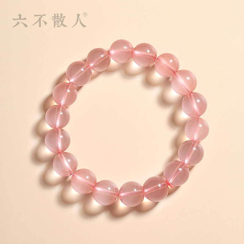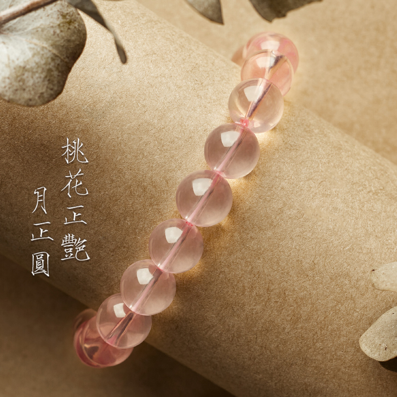 六不散人原创设计风月老天然粉色水晶手链礼物新中式桃花粉晶手串