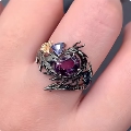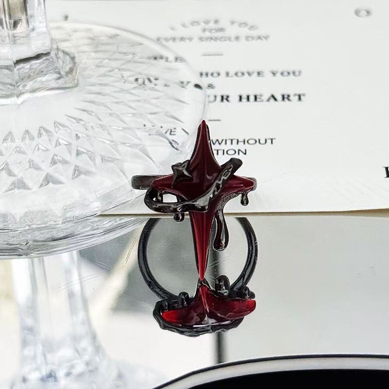 暗黑系红色芒星开口戒指可调节小众缠绕百搭设计感朋克指环潮男女