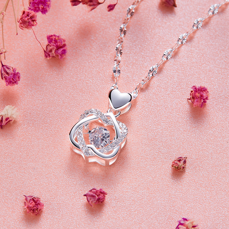 项链女999纯银足银灵动吊坠跳动的心锁骨链轻奢送女朋友情人礼物
