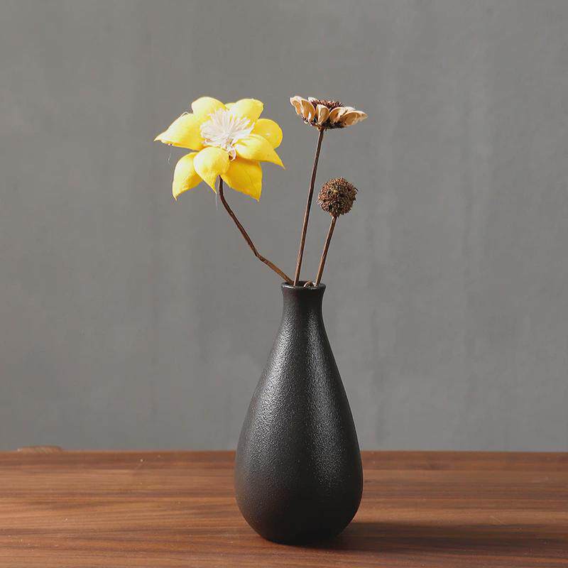 水培禅意客厅干花花束复古陶瓷小花瓶摆件中式插花桌面装饰品黑色