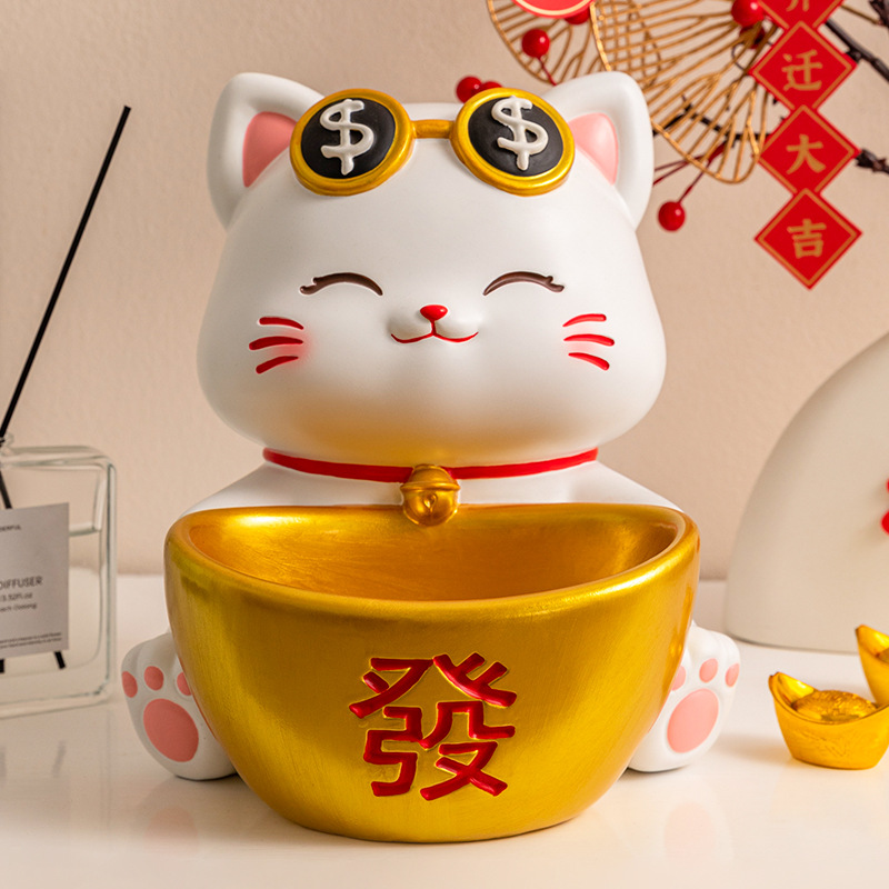聚宝盆招财猫玄关钥匙收纳摆件糖果盘乔迁新居送朋友搬新家礼物