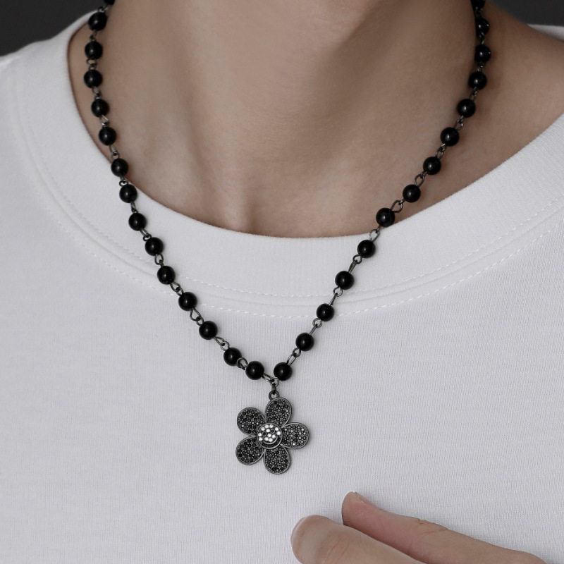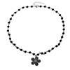 古力娜扎同款黑色串珠项链镶钻小众笑脸太阳花花朵笑脸毛衣链女