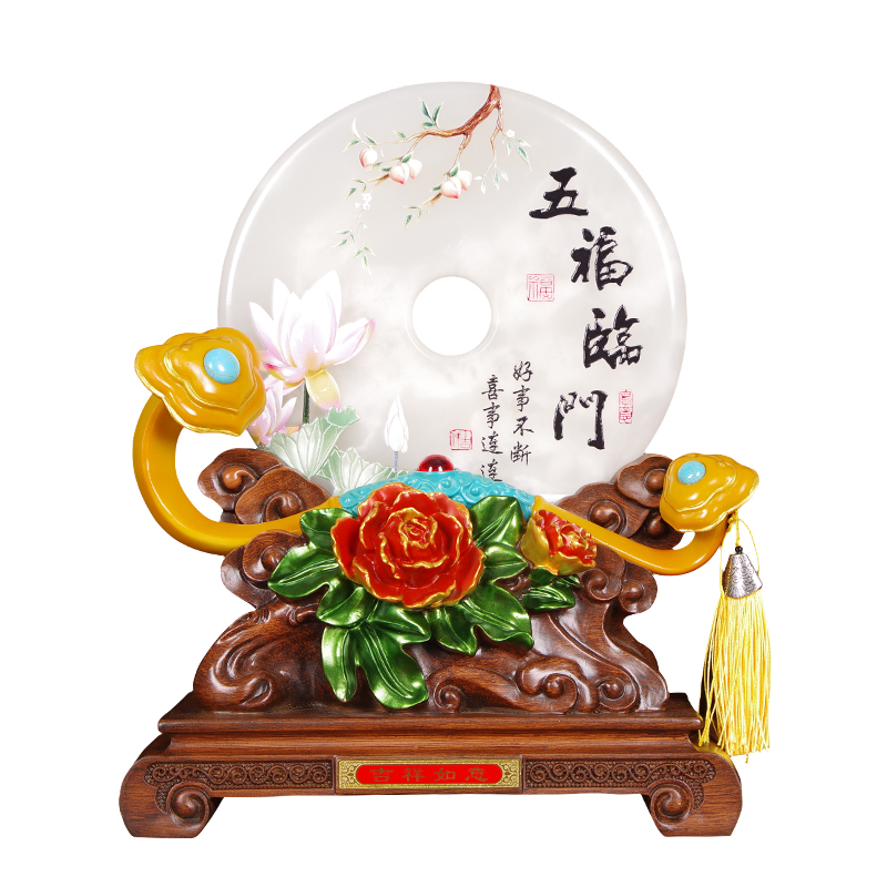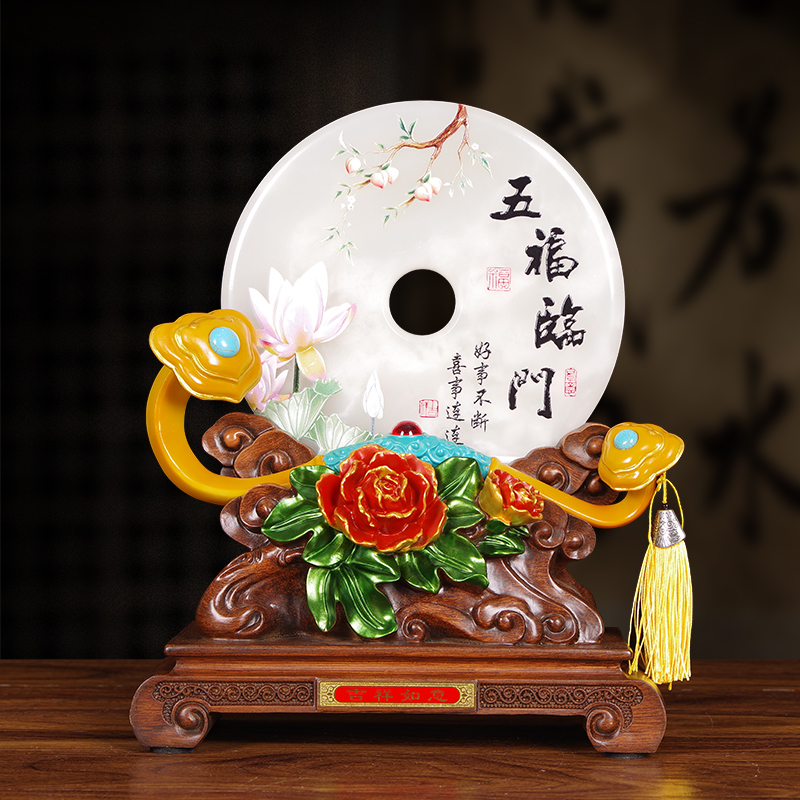 招财五福临门如意玉石平安扣摆件家居客厅酒柜工艺品乔迁新居礼品