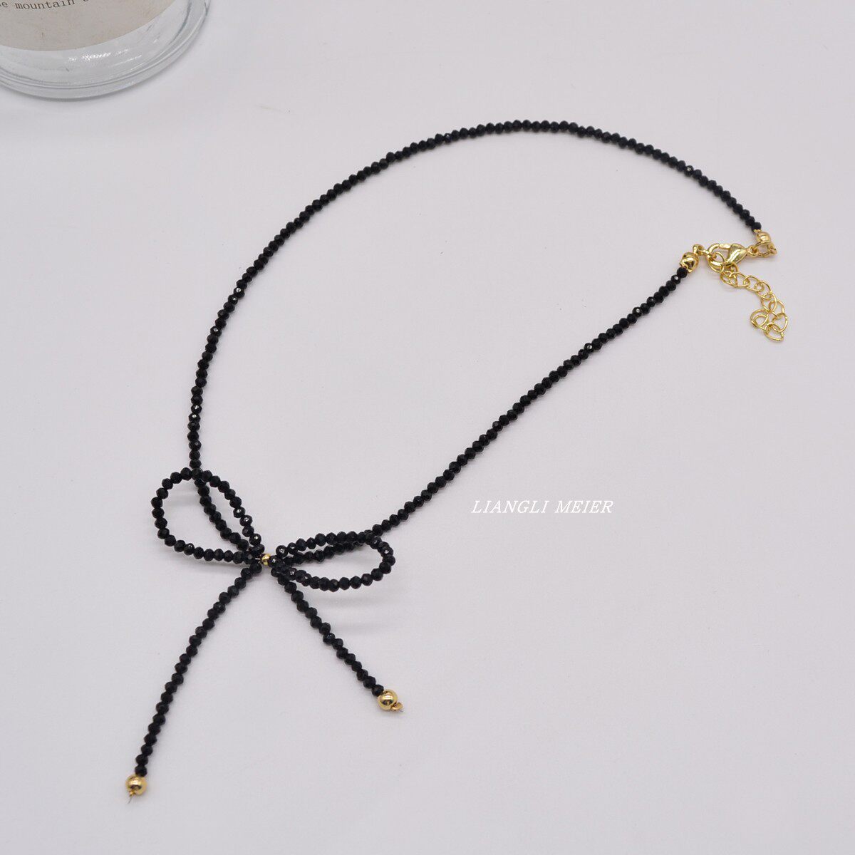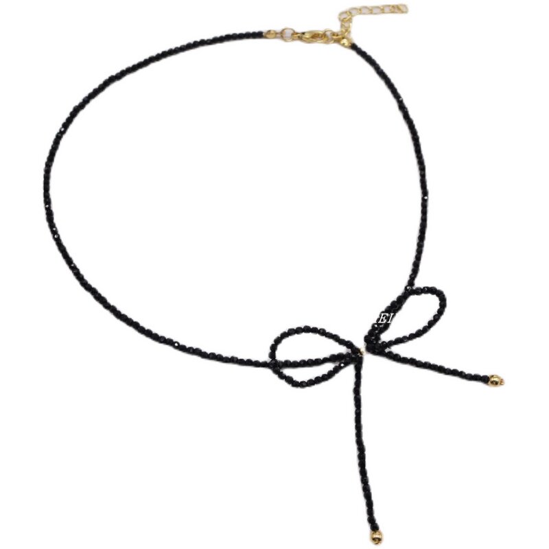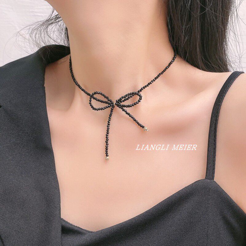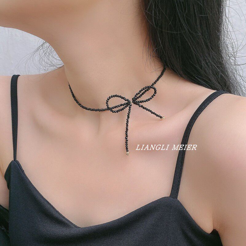 日韩个性极细黑色尖晶蝴蝶结锁骨链不掉色气质项链女森系水晶脖链