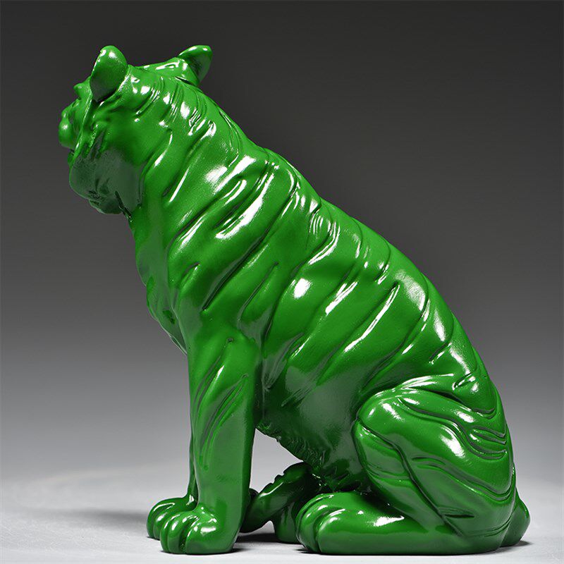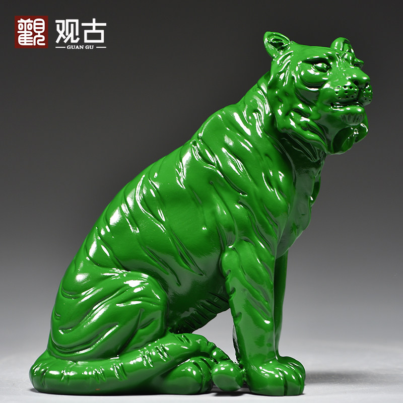绿色木雕老虎摆件家居客厅摆设生肖虎实木送礼办公桌面装饰品礼品