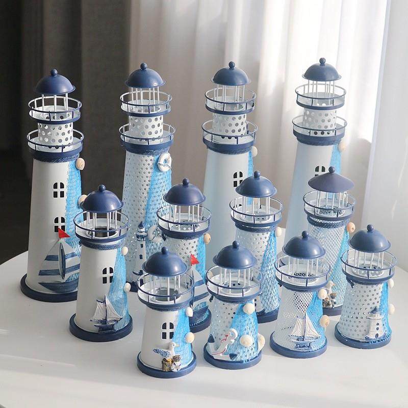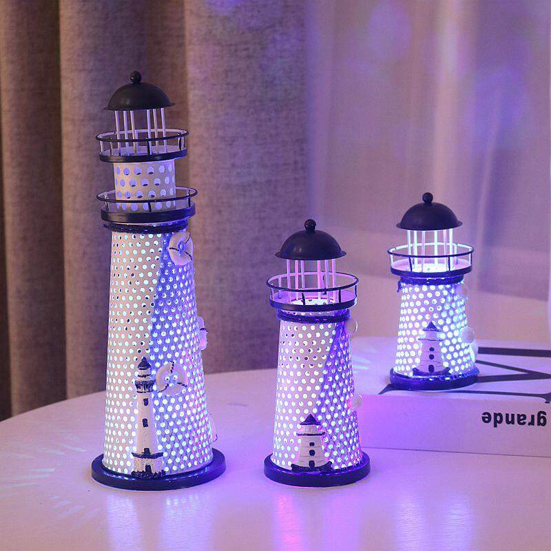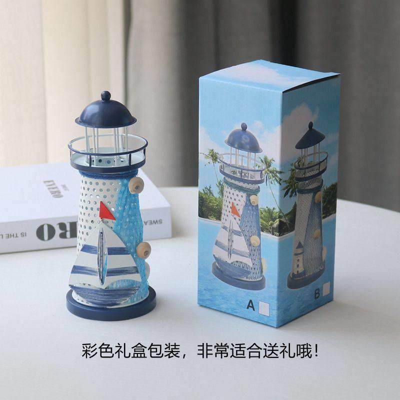 地中海铁皮电子灯塔摆件创意桌面摆件海洋风发光灯塔海边纪念礼品