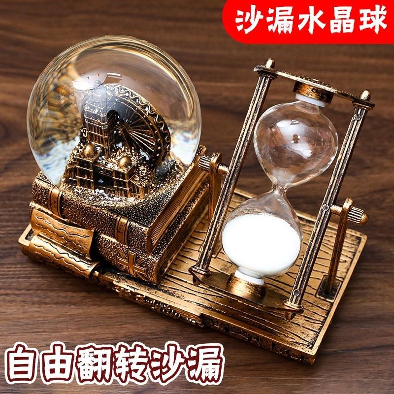 优选复古沙漏计时器水晶球八音盒发光桌面装饰摆件生日礼物送女生