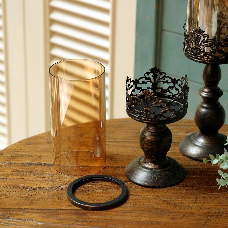 欧式复古铁艺玻璃烛台摩洛哥风格刷金做旧风灯家居饰品氛围摆件