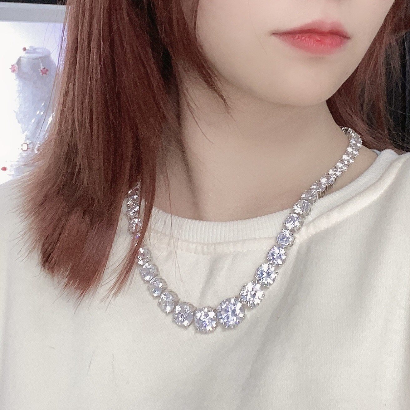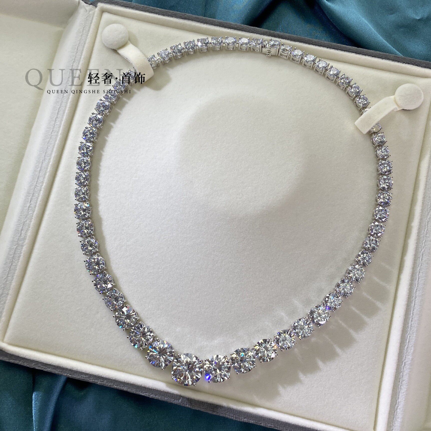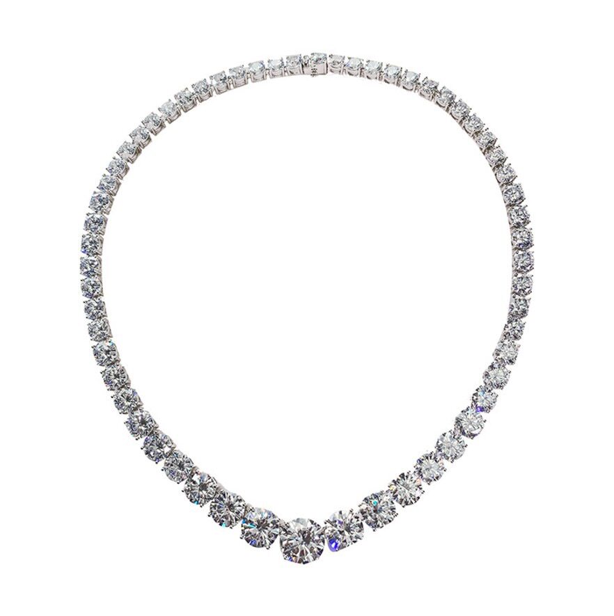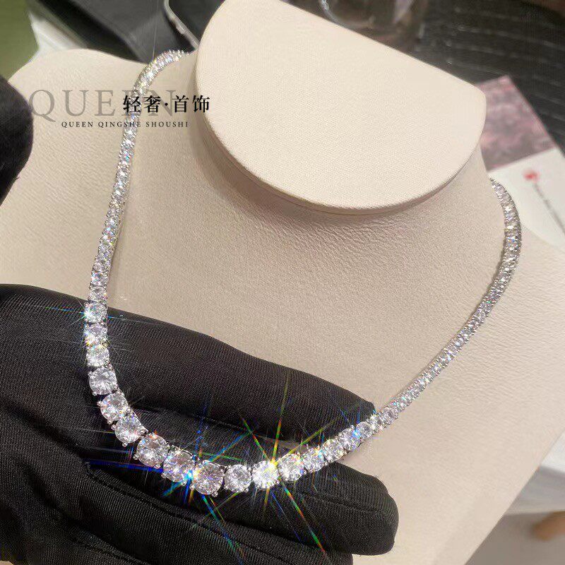 18K金进口D色莫桑石欧美奢华项链单排满钻百搭晚宴超闪锁骨链情侣