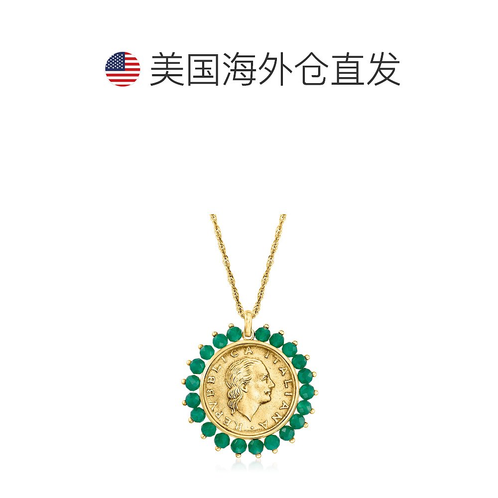 自营 Ross-Simons 纯正 200 里拉硬币和绿色玛瑙奖章吊坠项链 18