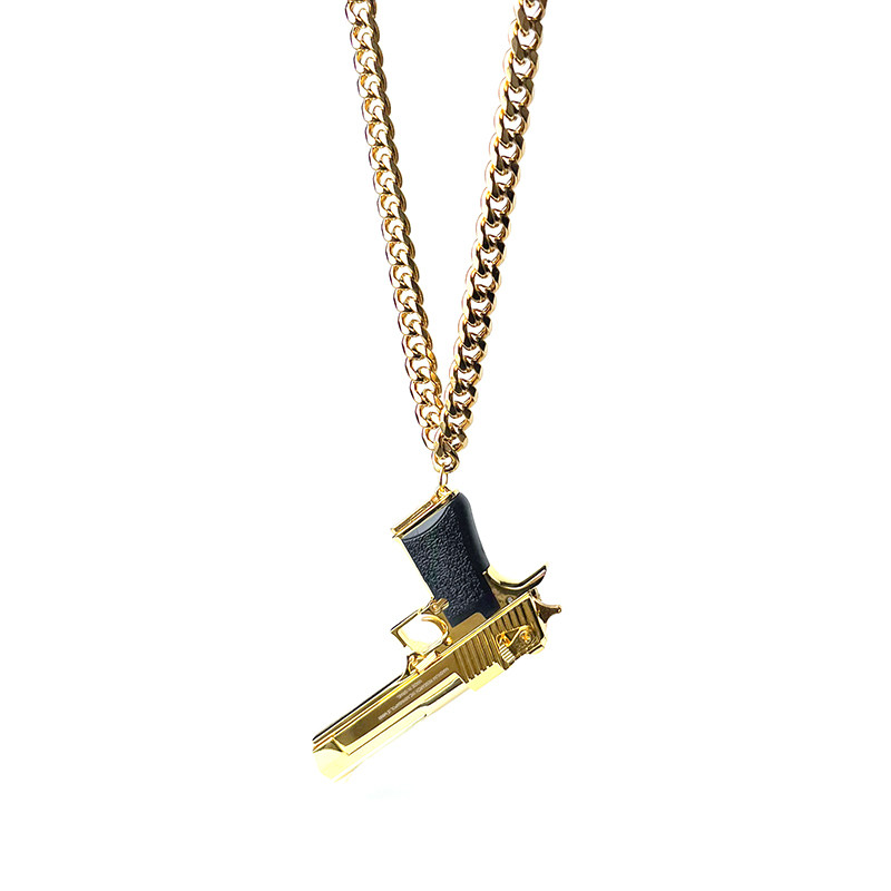 欧美黄金沙漠之鹰手枪项链钛钢可拆解CFCSGO周边模型1:3解压挂件