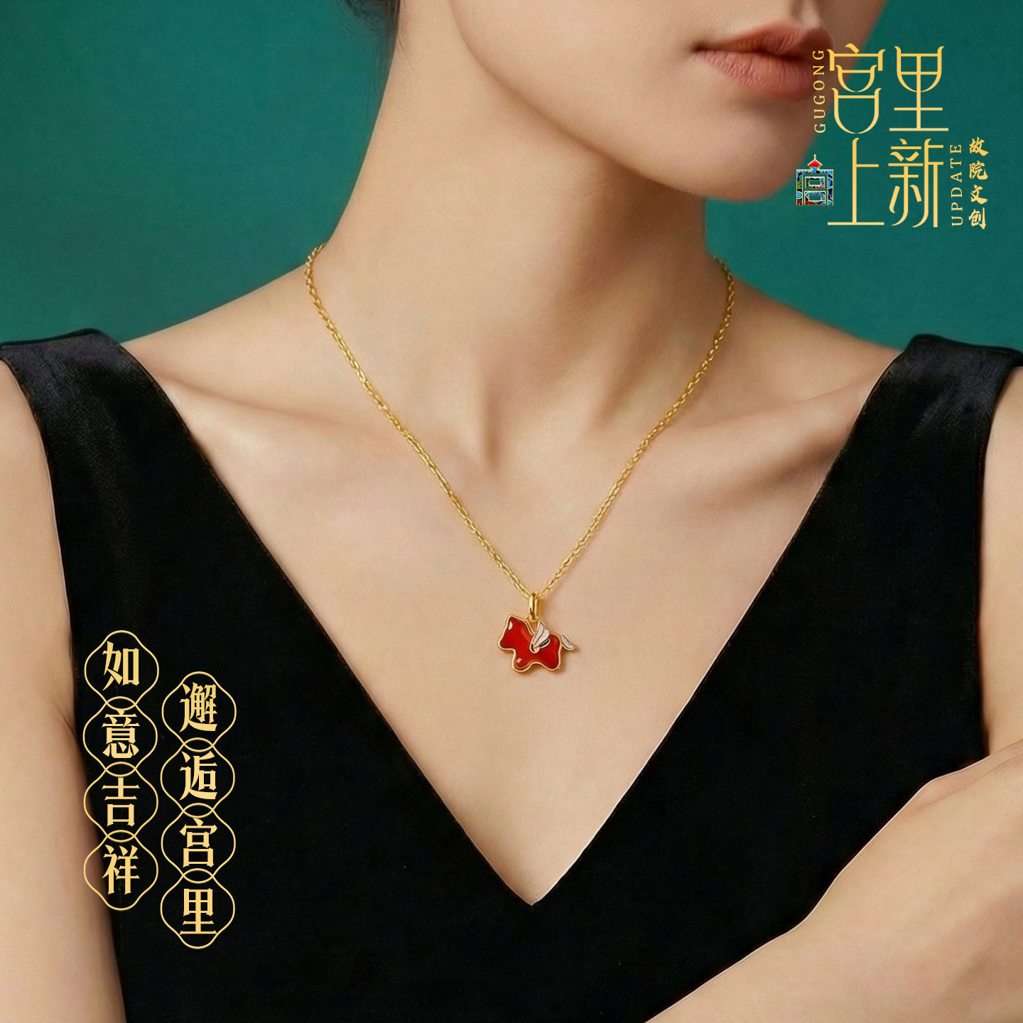 宫里上新小马吊坠女纯银天然红玛瑙项链红色马年本命年生日礼物