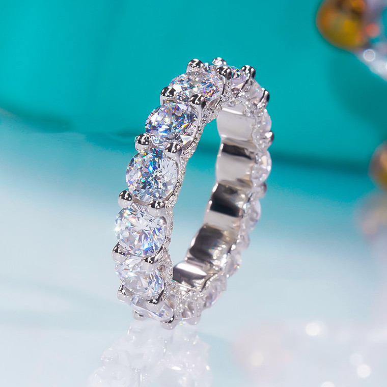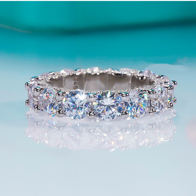 PT950铂金美国进口D色莫桑石群镶满钻圆形排戒纯银百搭奢华戒指