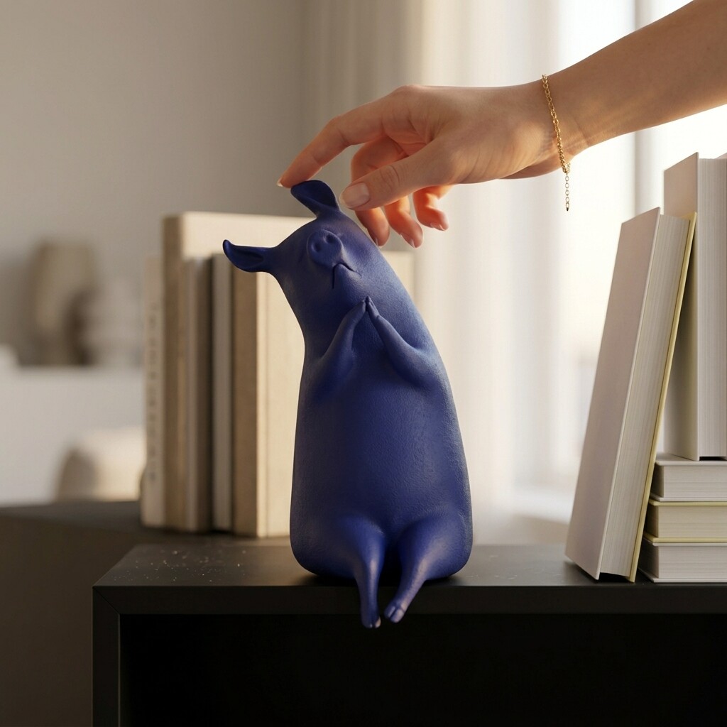 创意猪造型装饰摆件家居客厅书房桌面工艺品蓝色树脂摆设