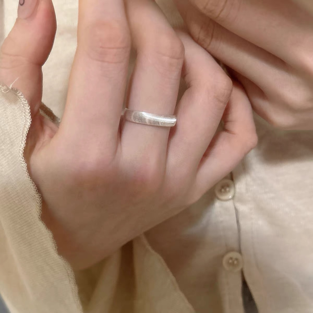 S925银波纹戒指女小众设计轻奢高级感指环2025新款爆款开口食指戒