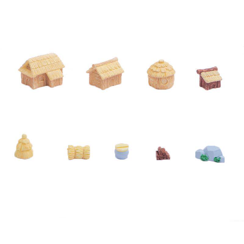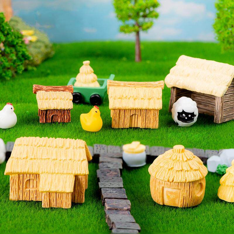 茅屋村落微景观田园茅草屋房子小摆件茅草村造景装饰配件树脂摆件
