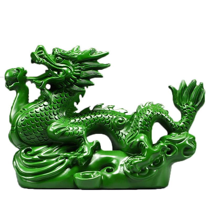 绿色实木雕刻龙摆件十二生肖木头龙客厅电视柜装饰工艺品新居送礼
