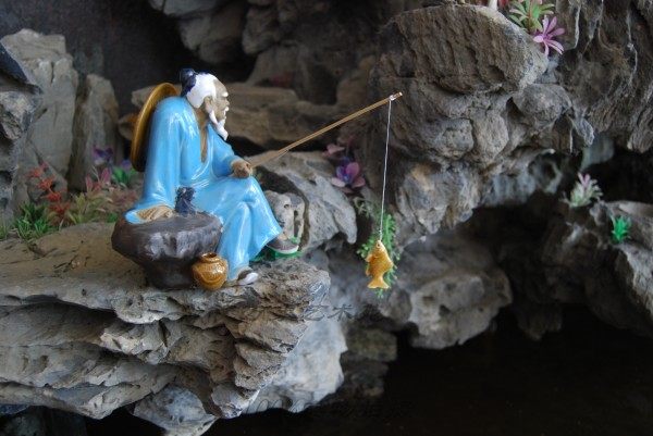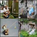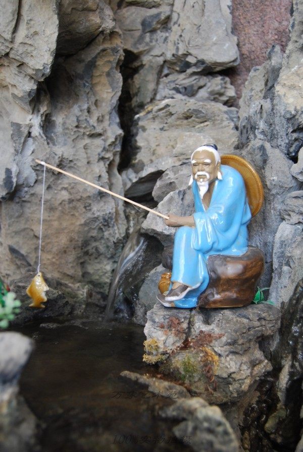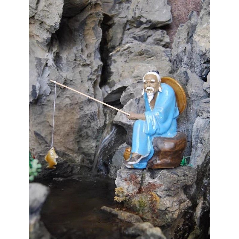 高16姜太公悠闲钓鱼翁精品陶瓷优雅家居摆件鱼池鱼缸假山造景装饰