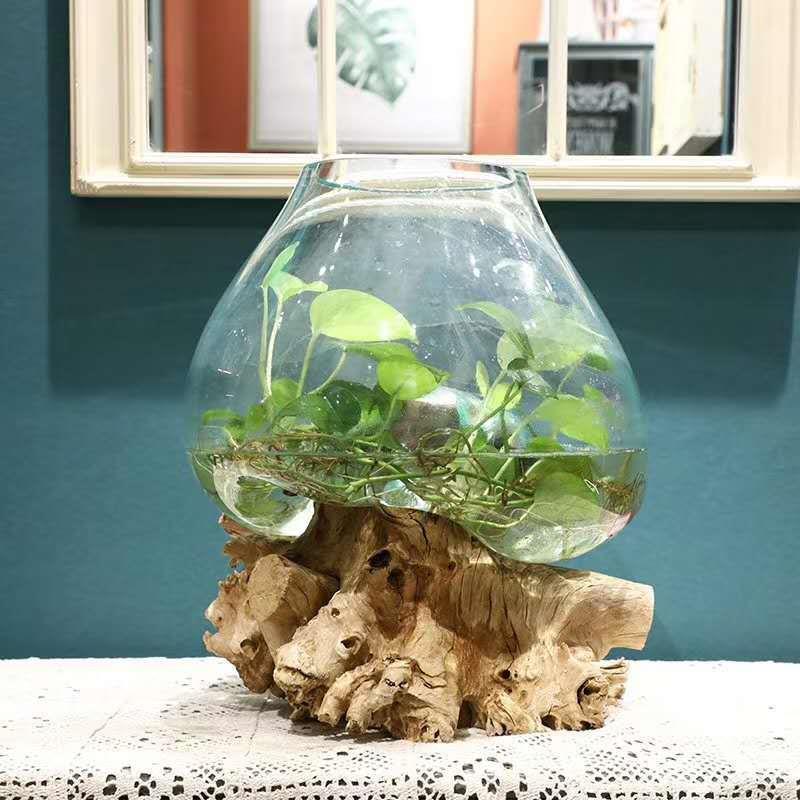当前位置:首页>商品详情>沉木枯木创意个性绿萝铜钱草玻璃水培花插 禅意 新中式小鱼缸摆件