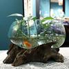 沉木枯木创意个性绿萝铜钱草玻璃水培花插 禅意 新中式小鱼缸摆件