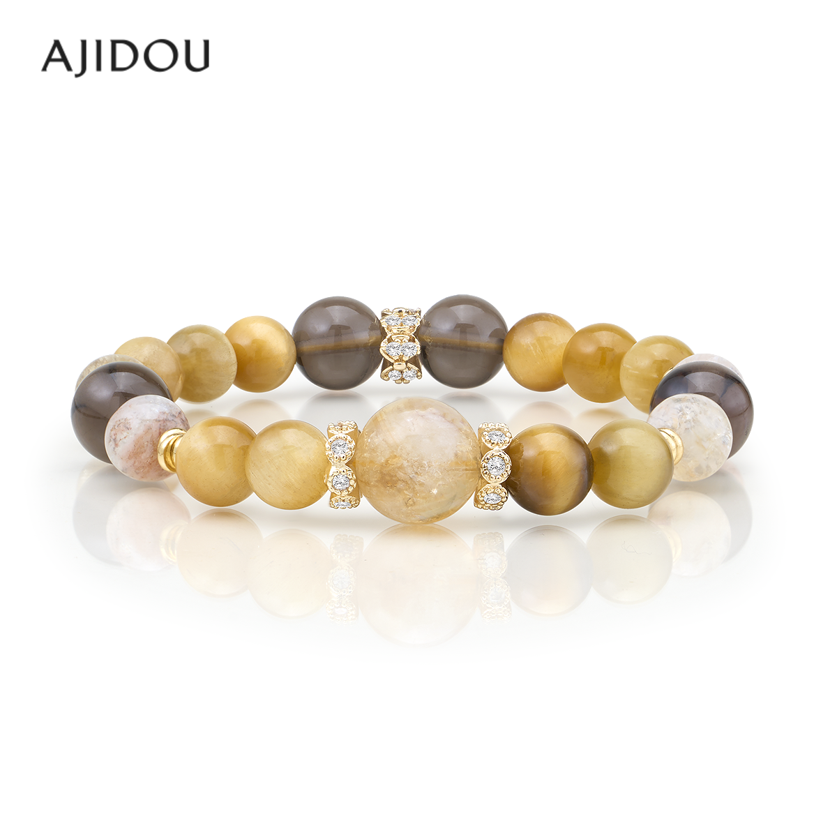 AJIDOU阿吉豆手链女款黄色招财轻奢手串木变石新中式国风串珠手饰