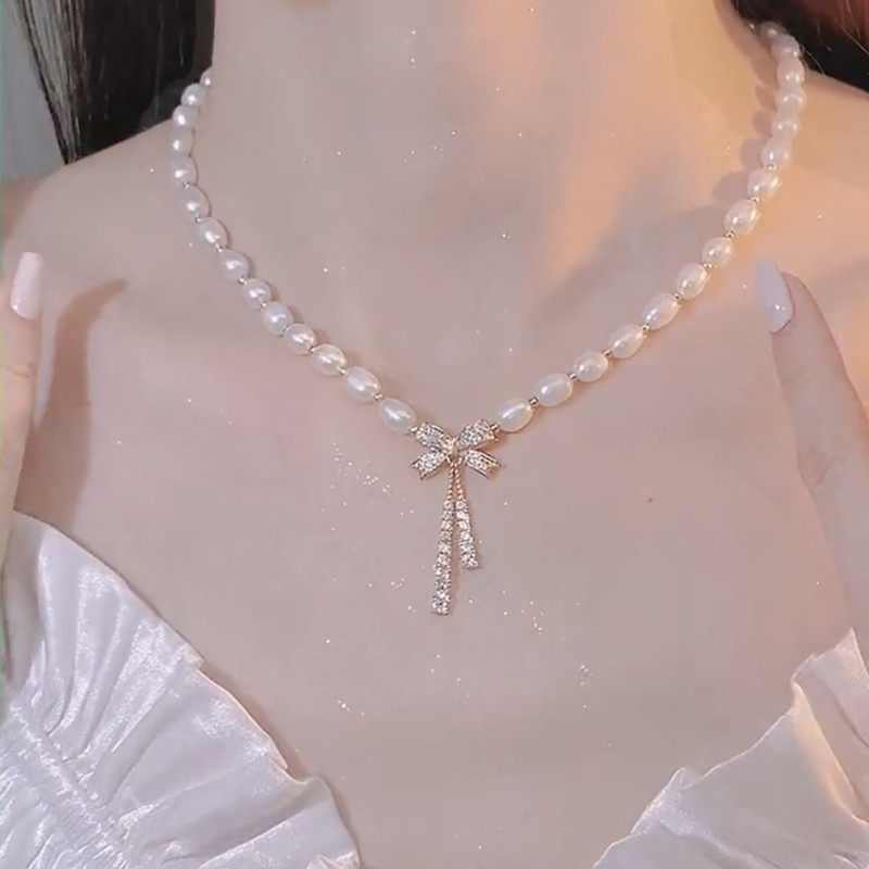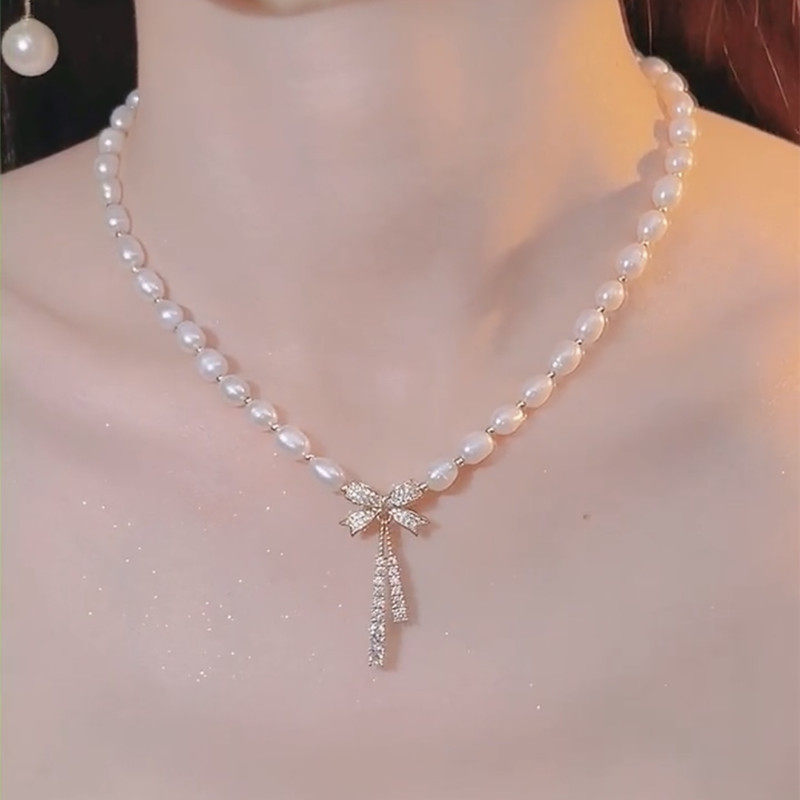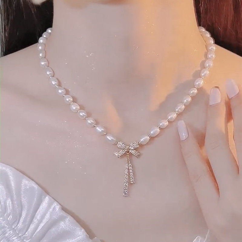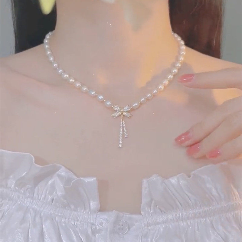 气质百搭珍珠项链女2024年新款潮小众设计感蝴蝶结锁骨链轻奢颈链