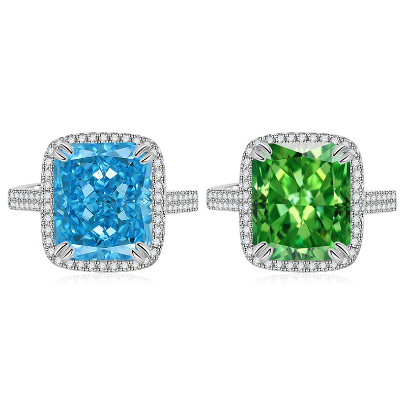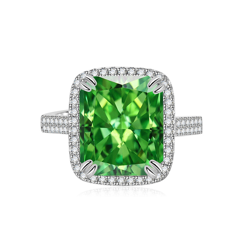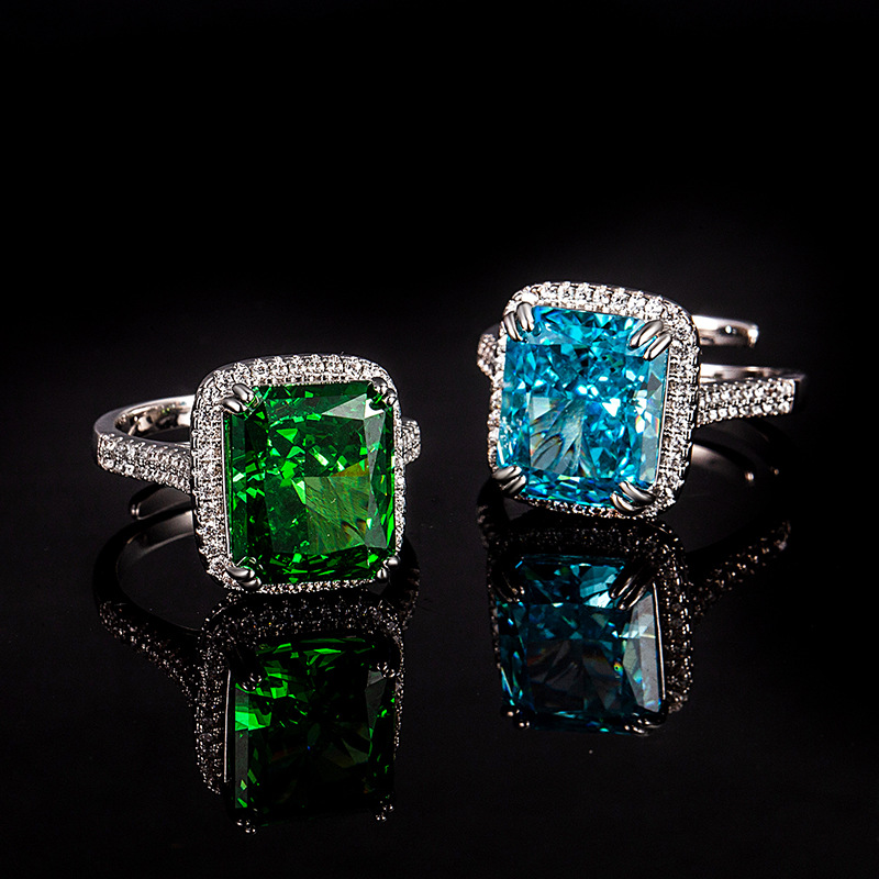 新款绿色戒指优雅轻奢小众高级感冰花切超闪高碳钻戒优雅精致百搭