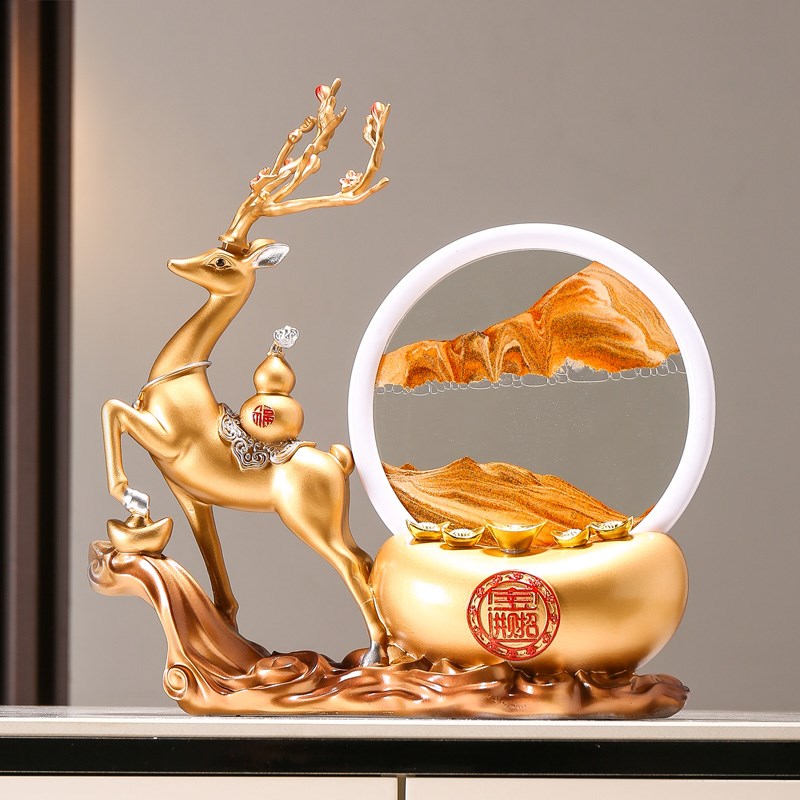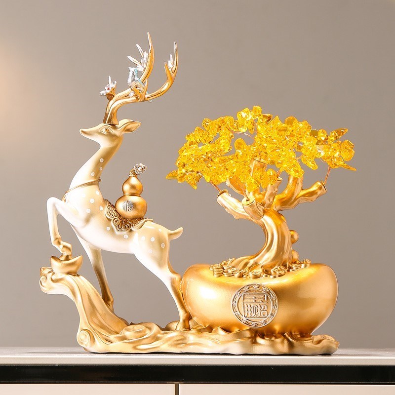 新中式招财鹿发财树摇钱树元宝摆件办公室装饰品开业乔迁礼物礼品