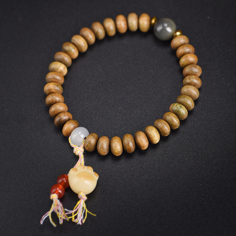 绿檀算盘珠DIY款白玉猫爪配饰款手串手链佛珠木串男女式文玩念珠