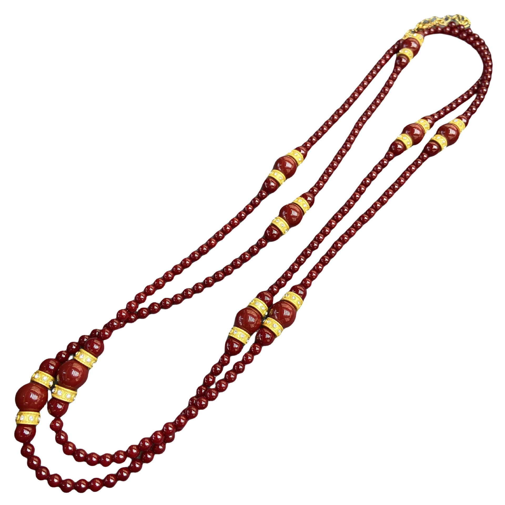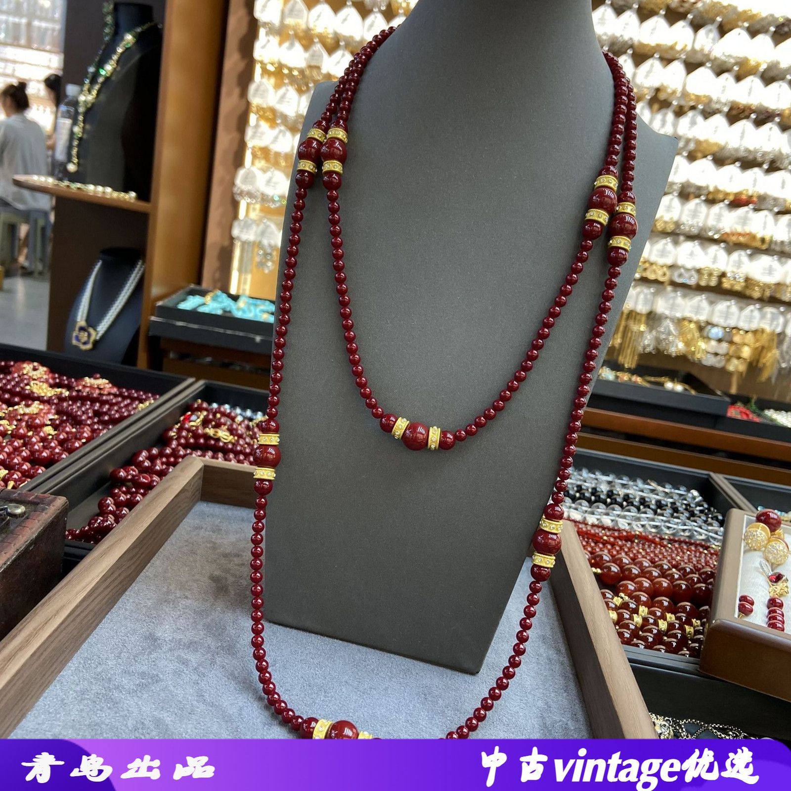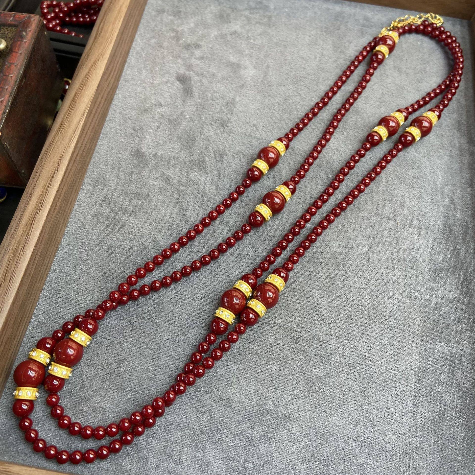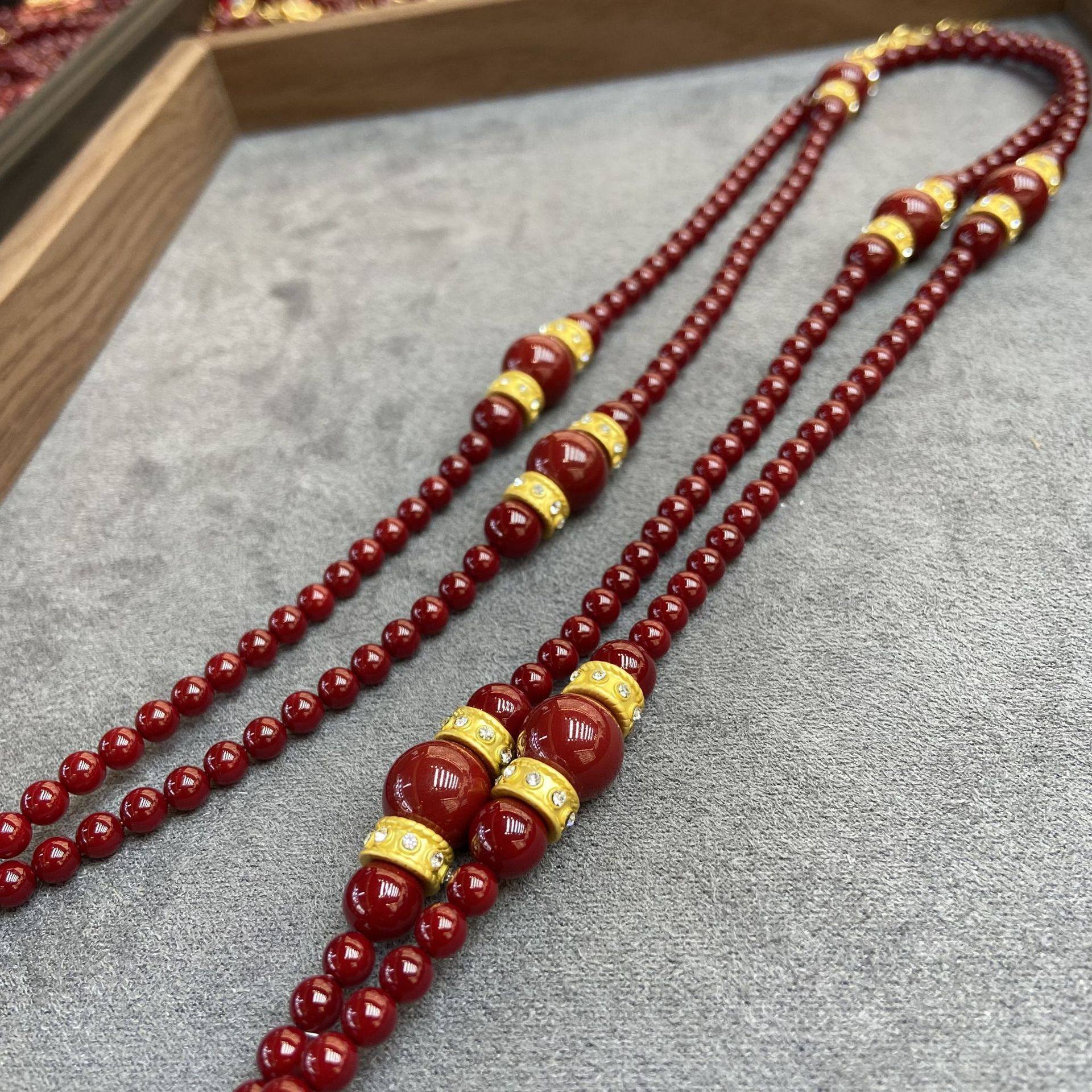 复古轻奢5m-12m安哥拉红色串珠超长项链镶钻黄铜格珠秋冬款毛衣链