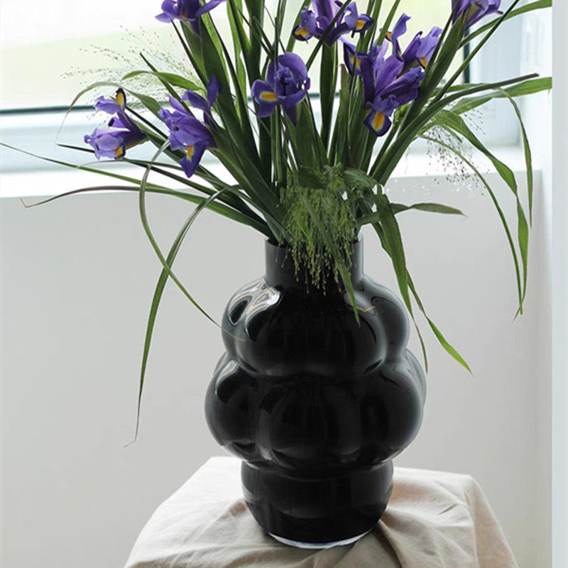 批发美学设北欧轻奢泡泡花器 黑白色大号玻璃花瓶 家居装饰摆件
