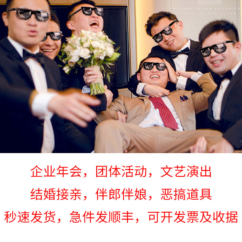 马赛克眼镜社会人大佬二次元婚礼像素恶搞道具伴郎马赛克墨镜蹦迪