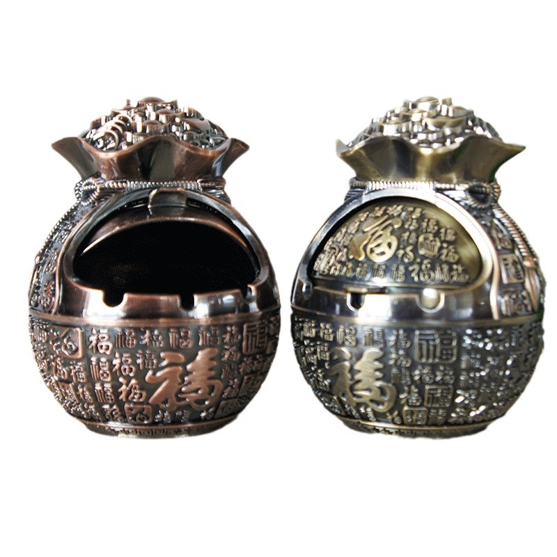 复古风金属钱袋烟灰缸年年有鱼百福五福临门模型摆件家居装饰品