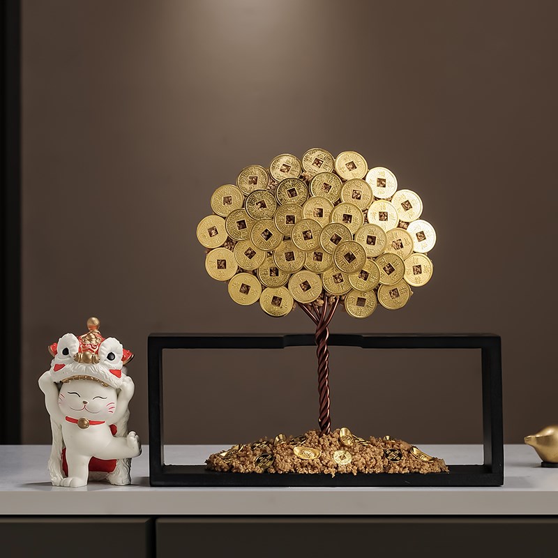 八方来财摇钱金钱发财树摆件开业店铺前台办公室装饰品乔迁礼品