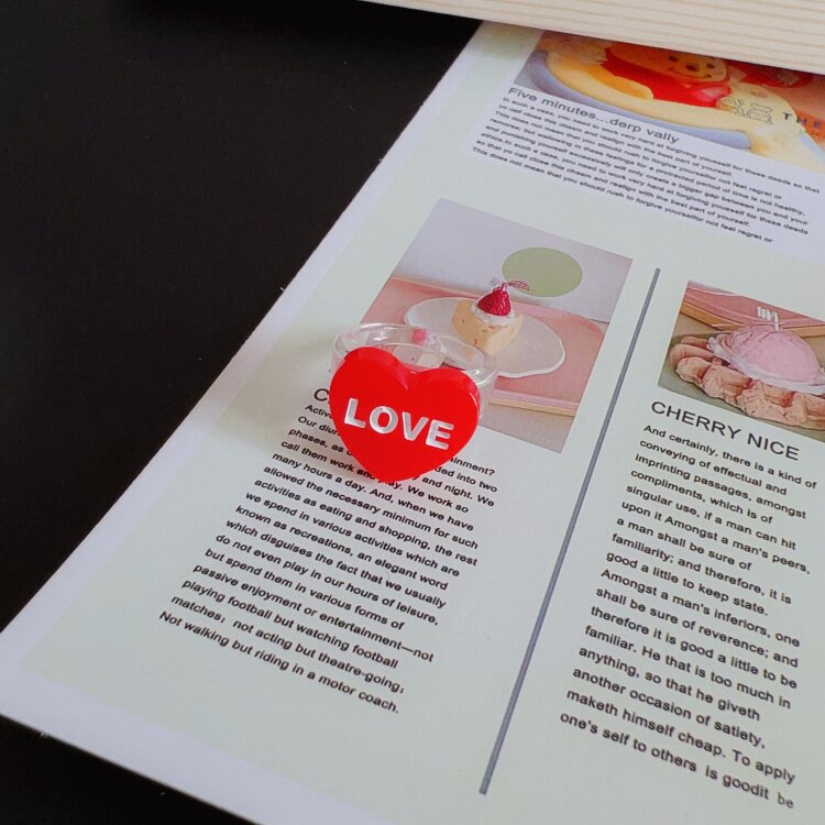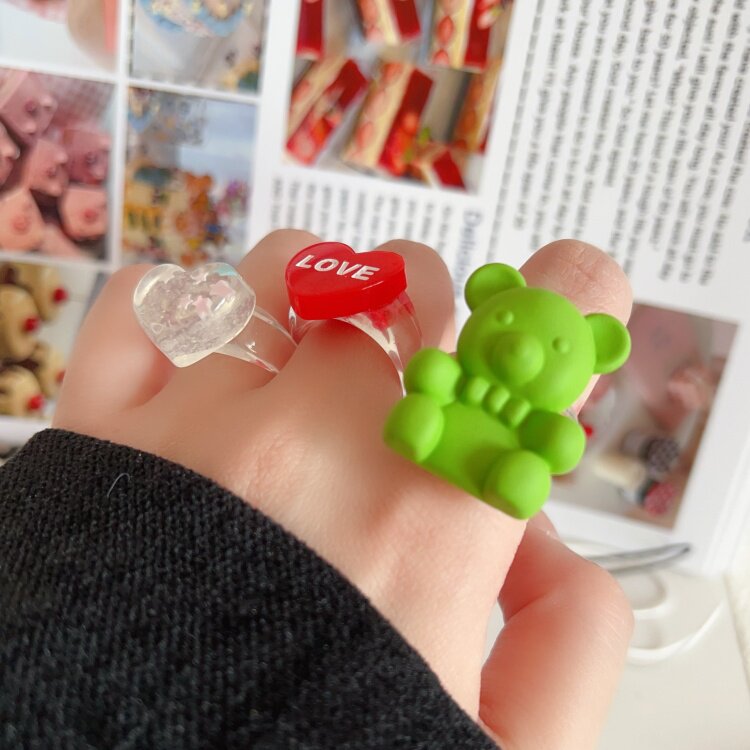 原创小众ins爱心小熊美式复古亚克力树脂叠戴戒指环Y2K千禧辣妹
