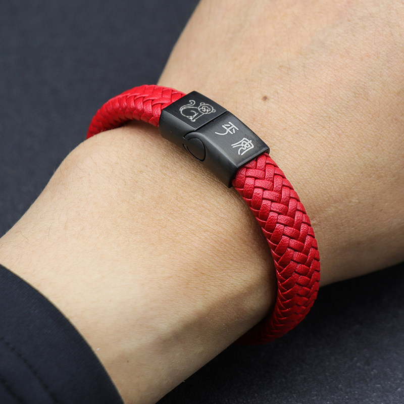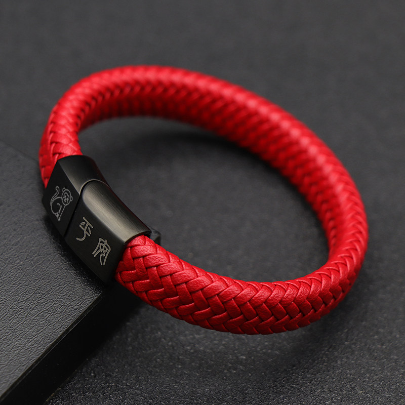 复古中国风红色本命年皮手链男女生肖猴个性定制饰品手环免费刻字