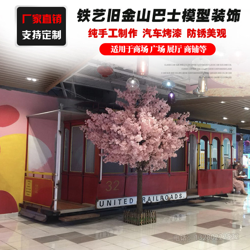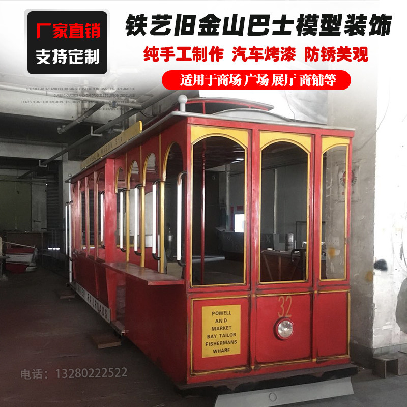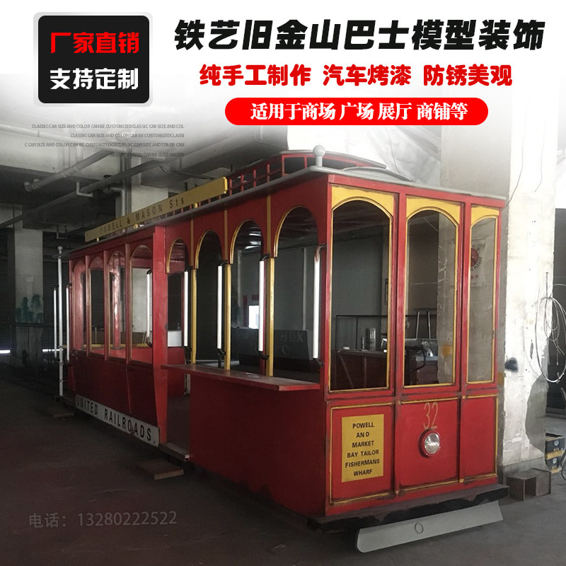定制铁艺旧金山巴士汽车模型售卖车创意大型美陈装饰摄影道具摆件