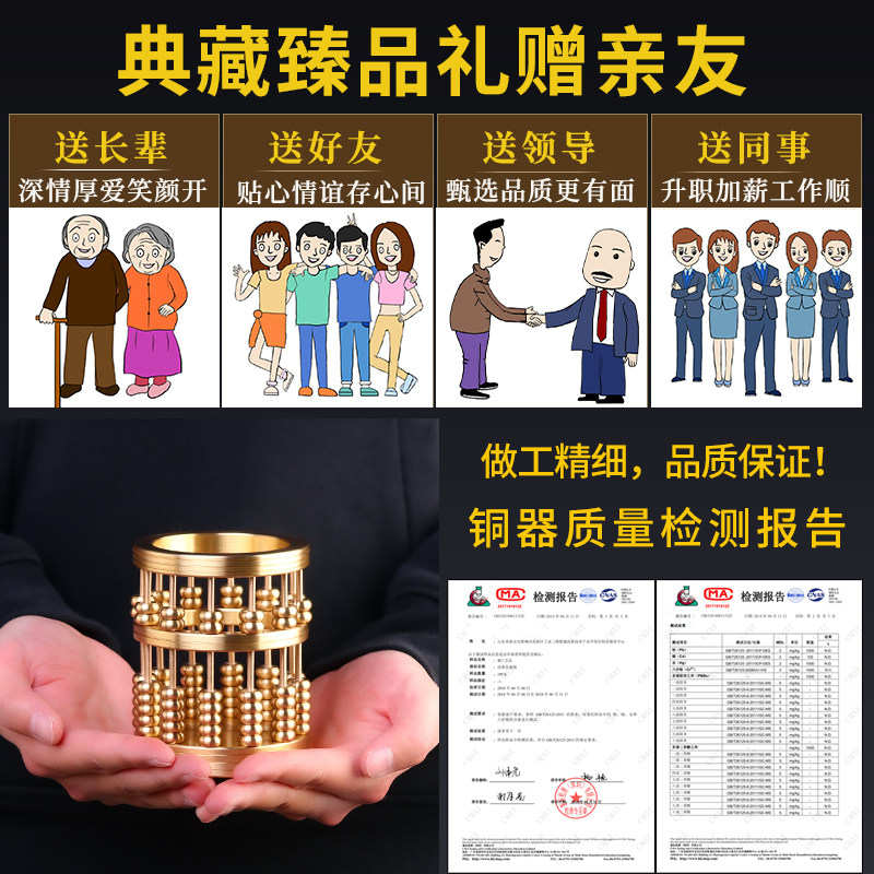 算盘笔筒摆件纯铜文房四q宝珠算用品创意办公室桌面书房装饰工艺