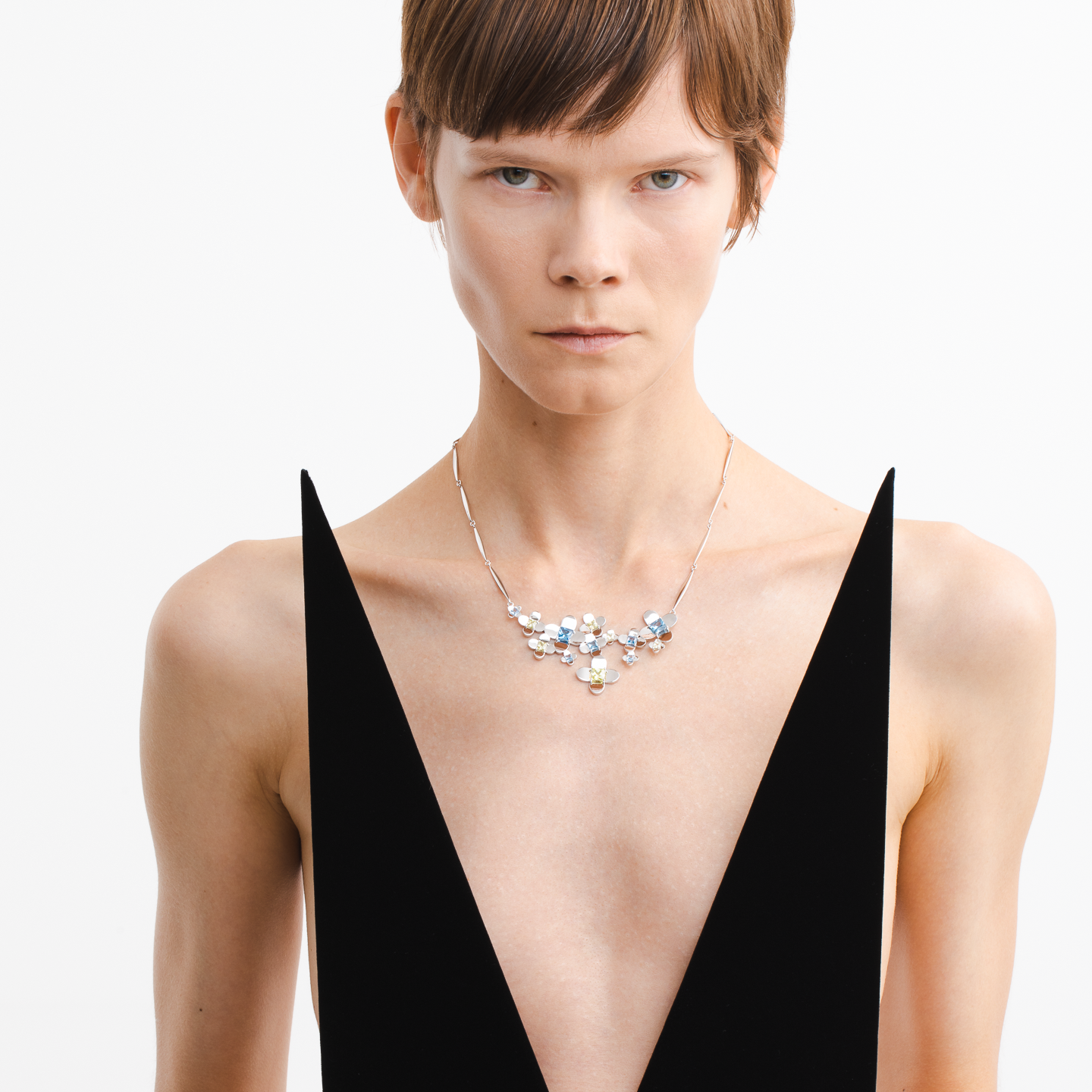 DANCE BLING花朵繁花水晶项链女士纯银链条颈链吊坠