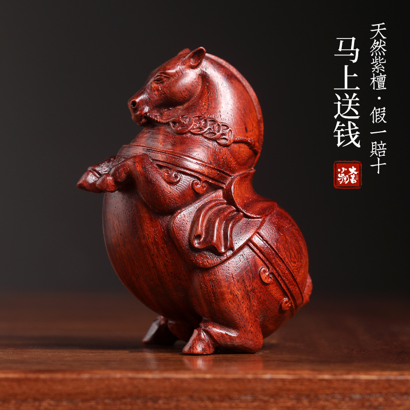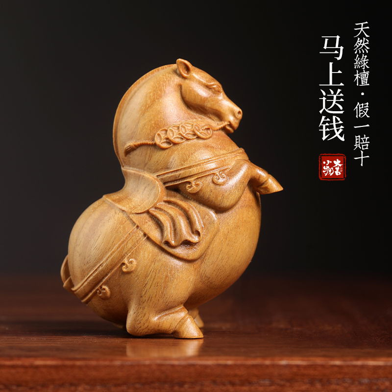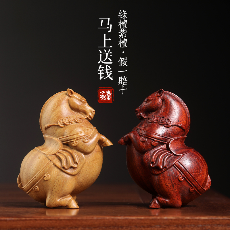 天然绿檀紫檀马上送钱实木摆件雕刻办公室文玩手把件马上有钱