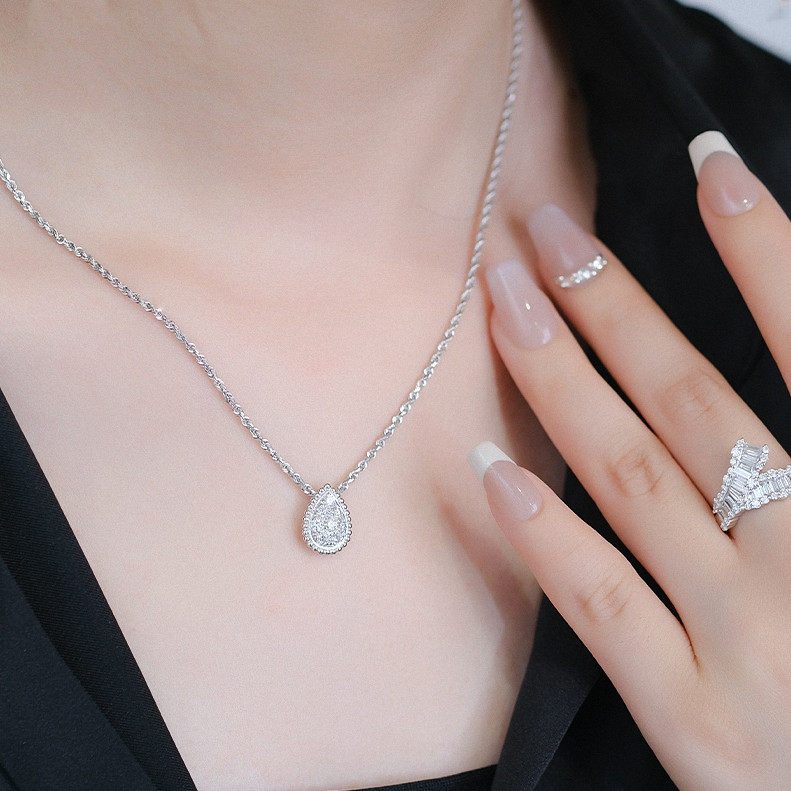 波西米亚水滴项链 女纯银镀18K黄金色白金镶钻麻花链高级设计百搭