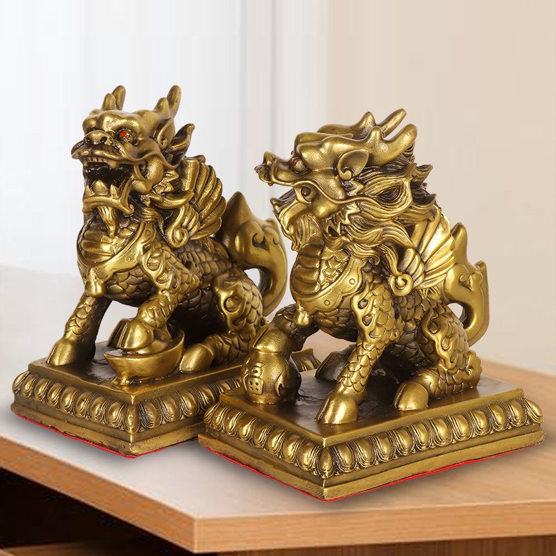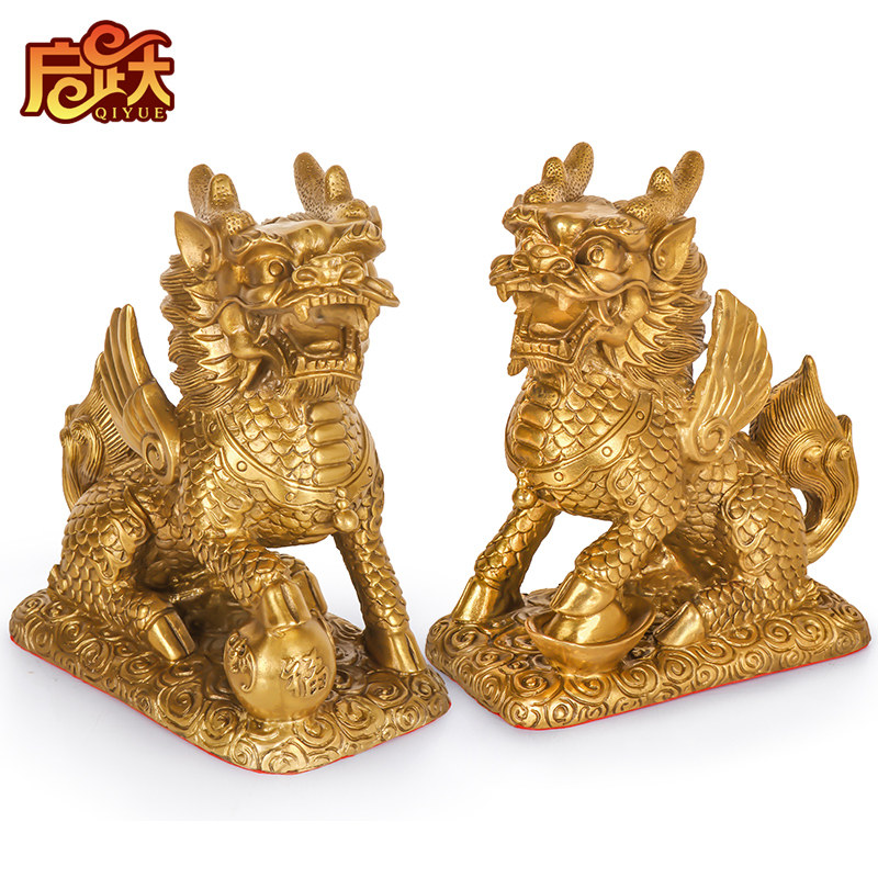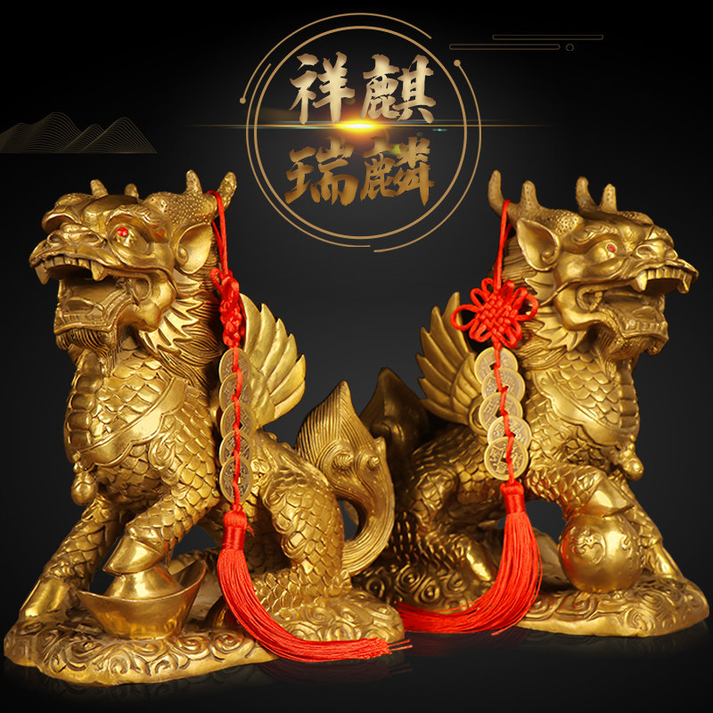 铜麒麟摆件一对纯黄铜公母八卦招财客厅装饰开业乔迁新居礼品礼物