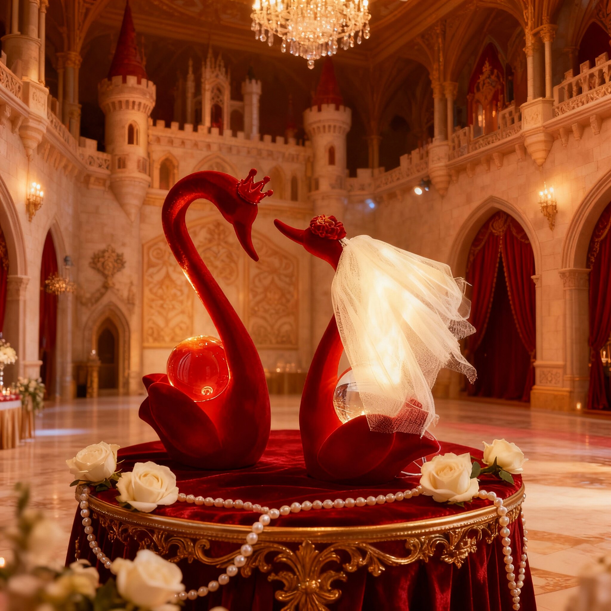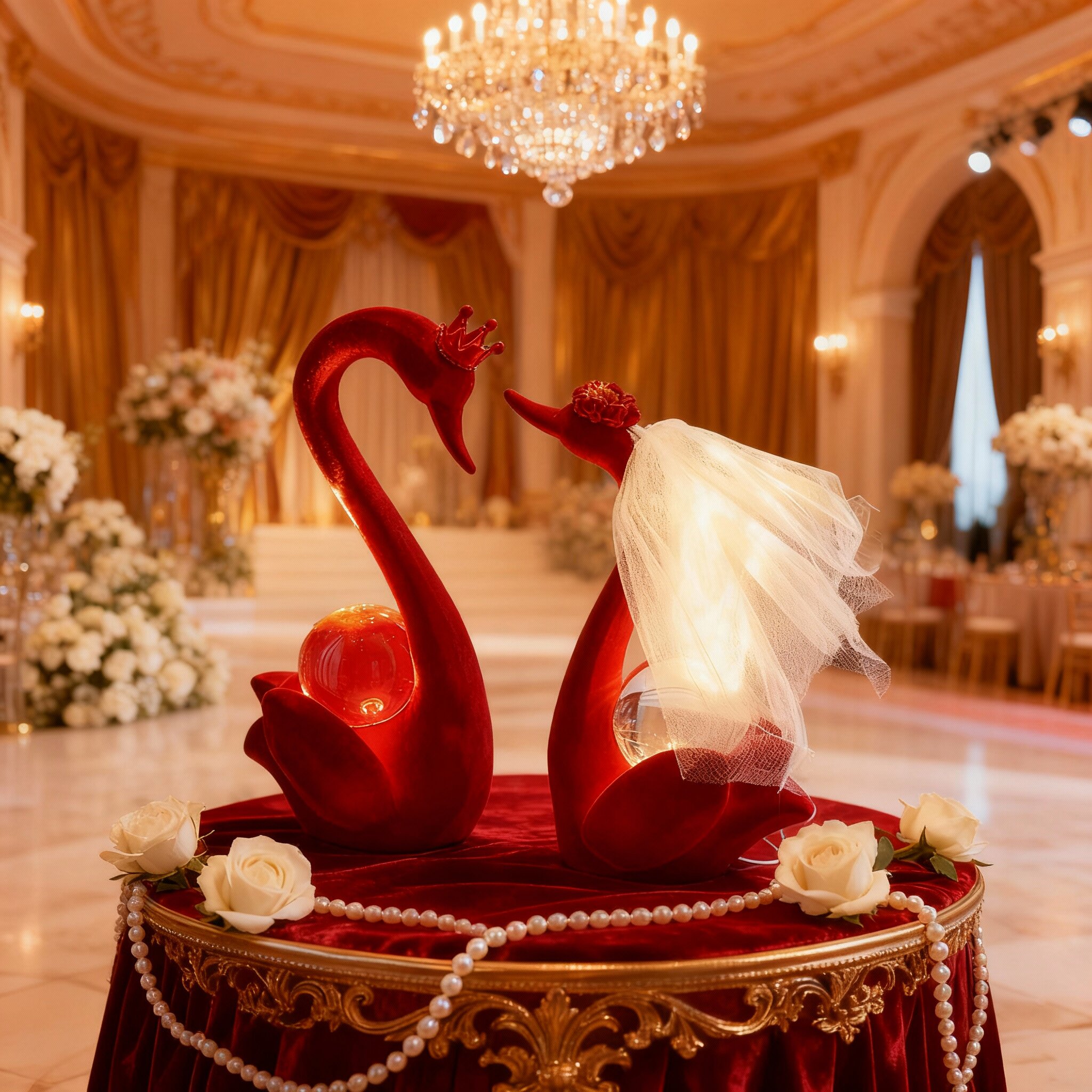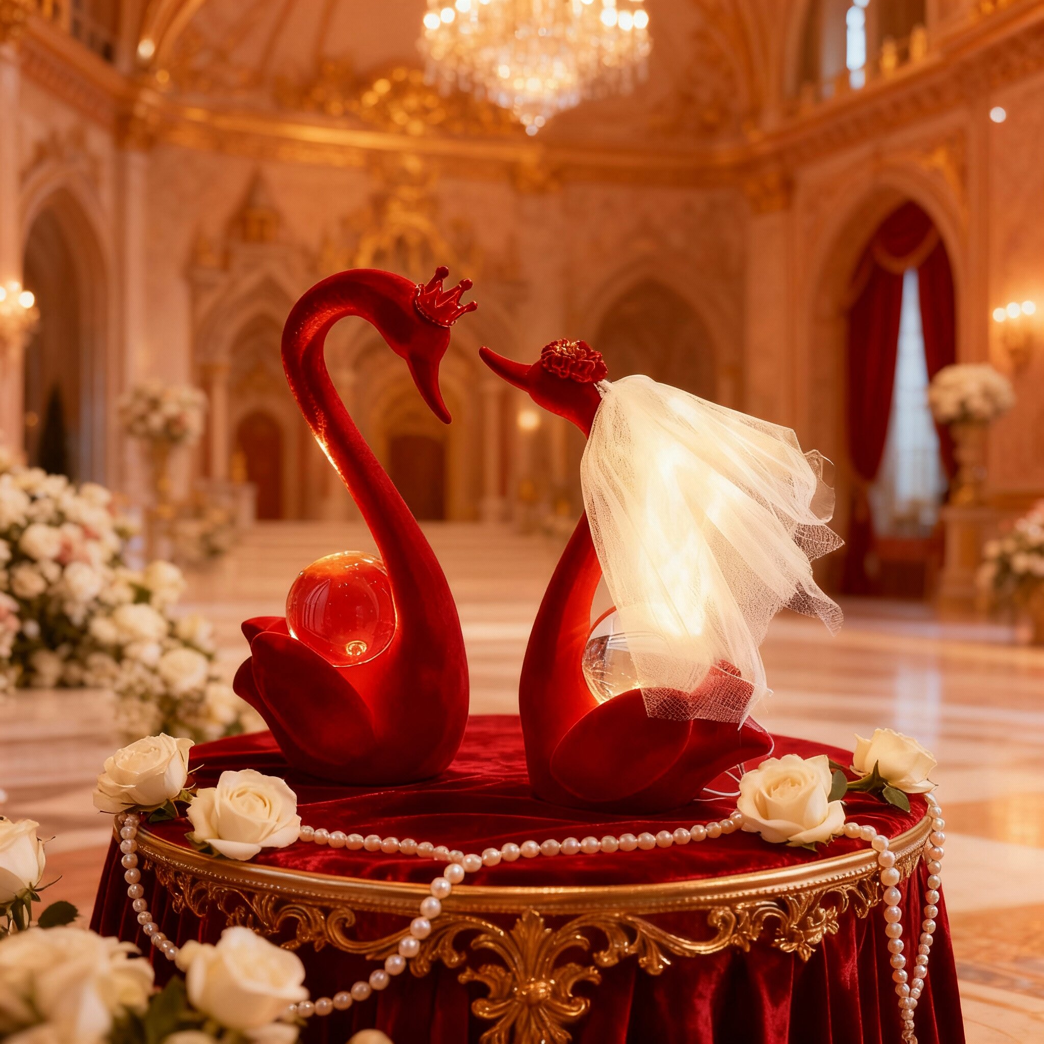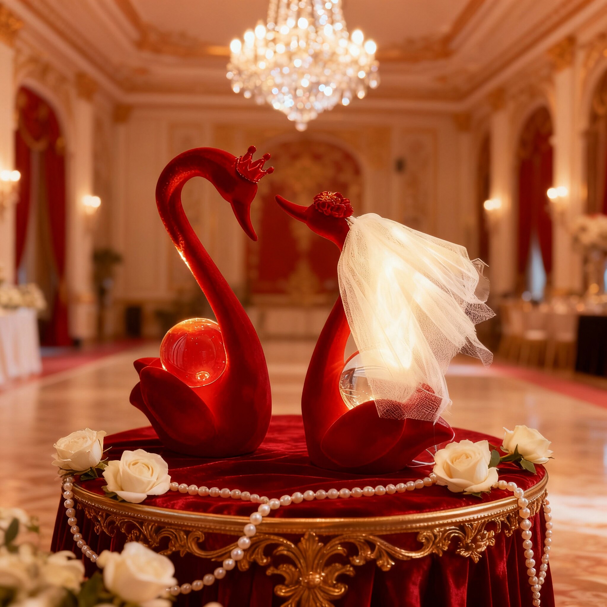 红色天鹅婚庆装饰摆件新婚房布置水晶爱心婚礼用品