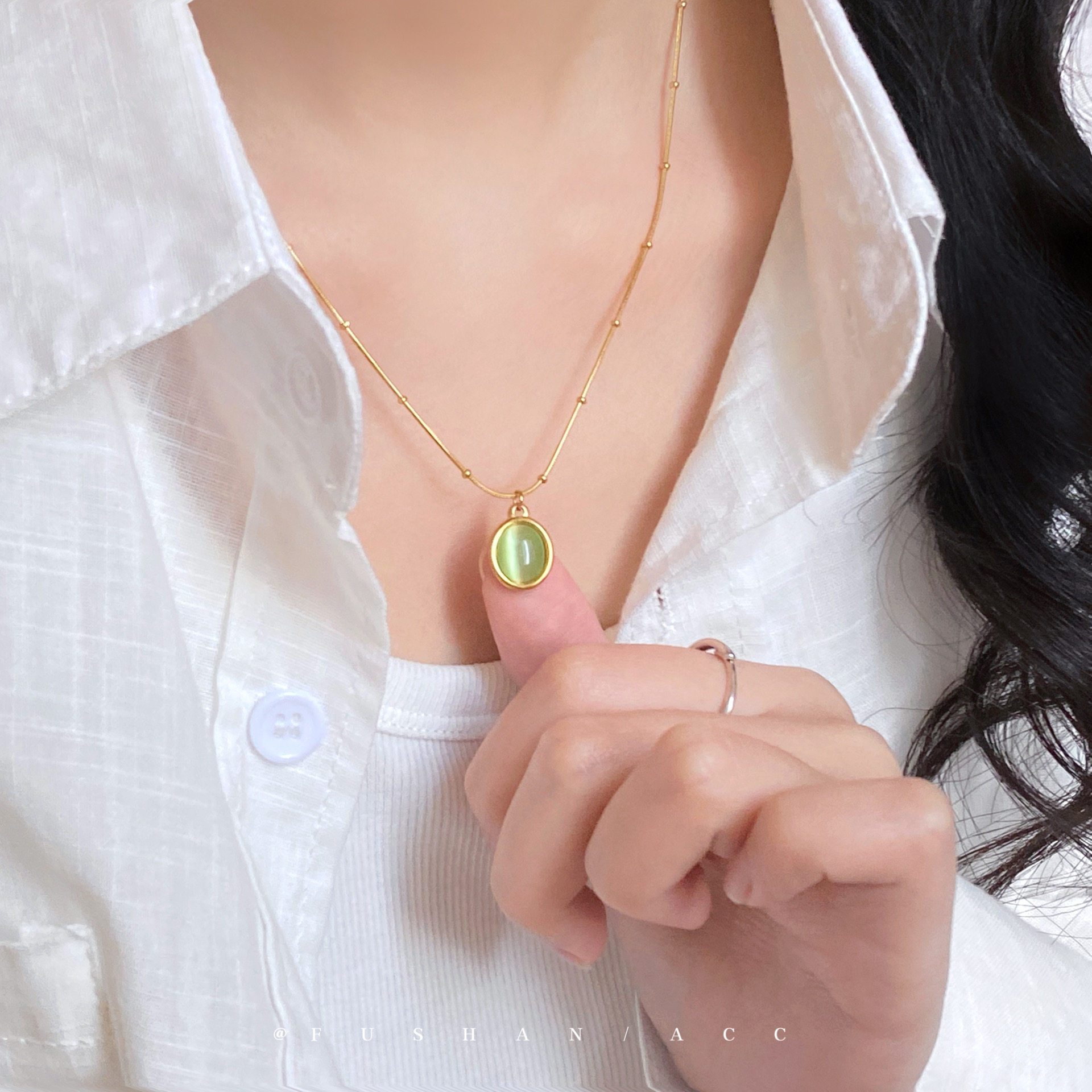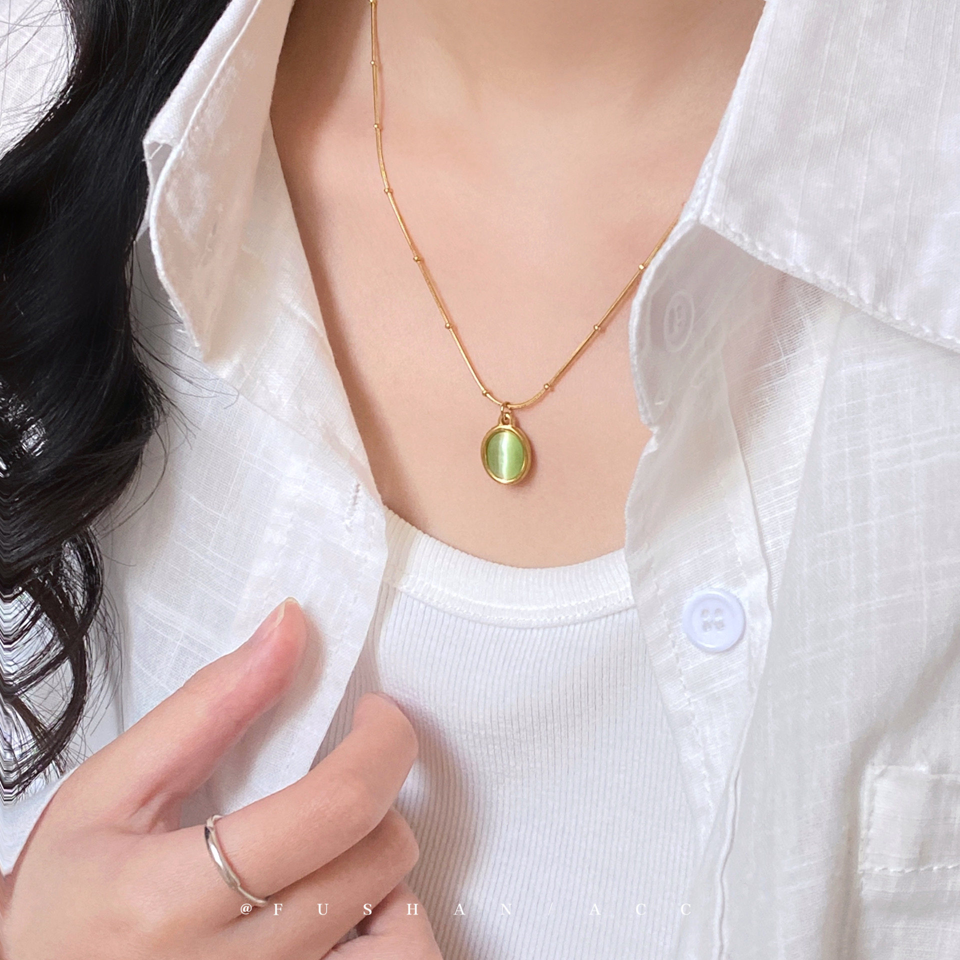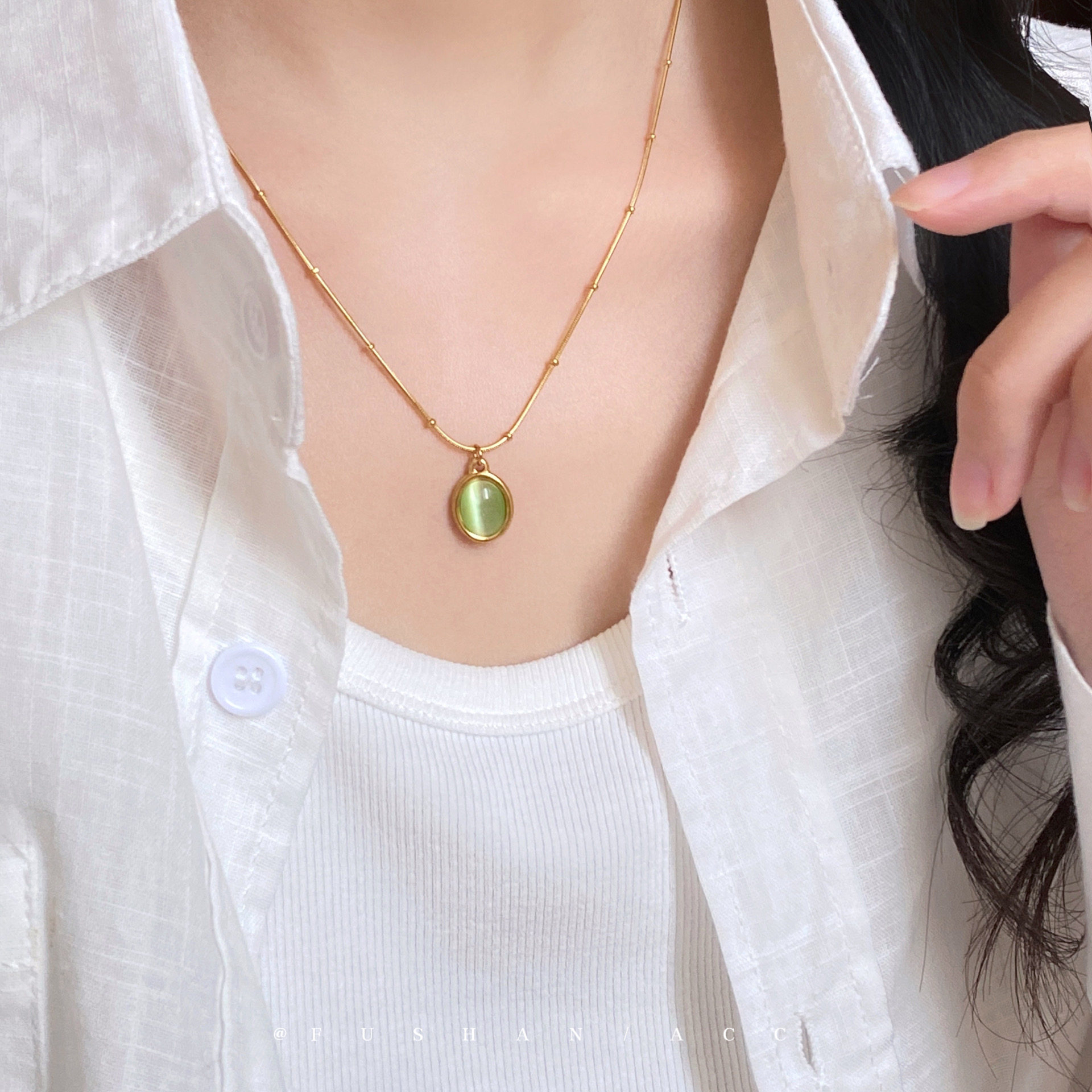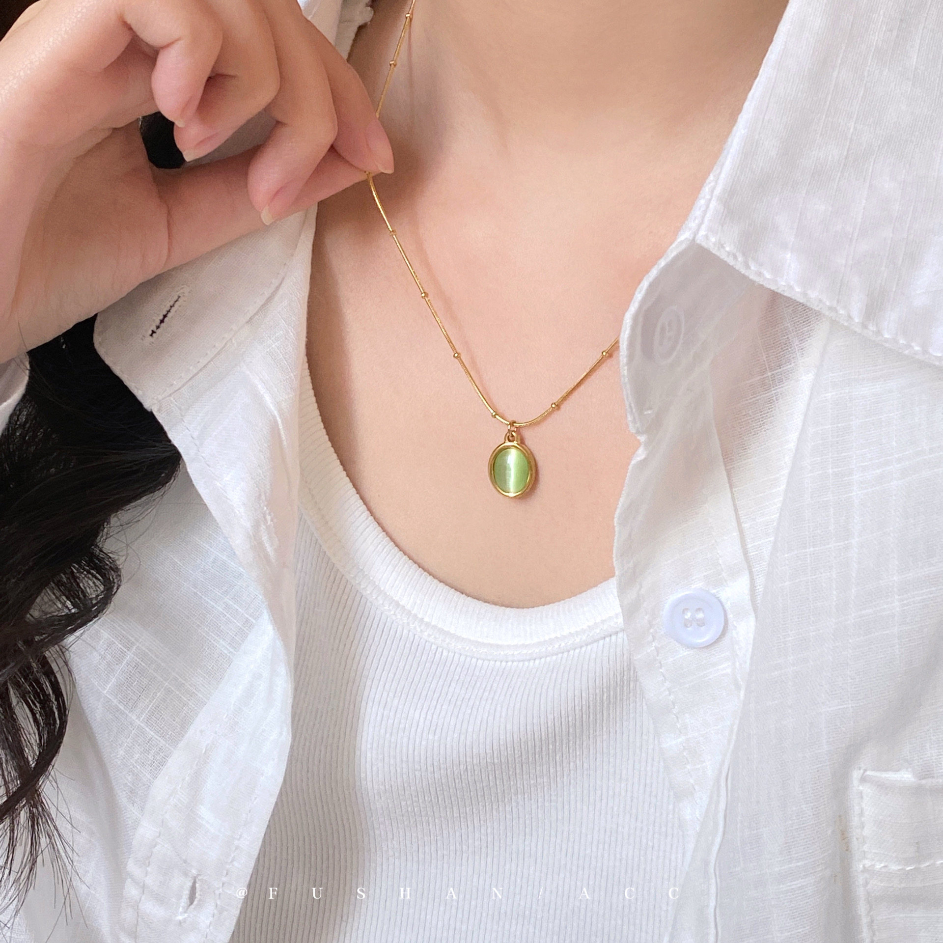 「绿野仙踪」轻奢气质绿色猫眼项链小众精致锁骨链个性高级感颈链