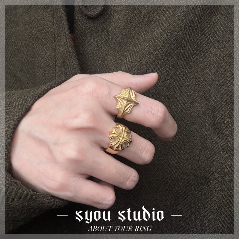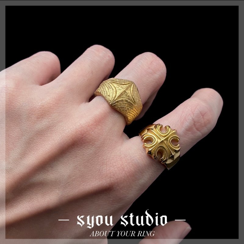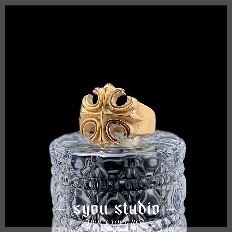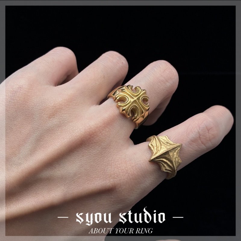 Syou复古十字花钛钢戒指金色男生小众设计哥特饰品大码欧美指环
