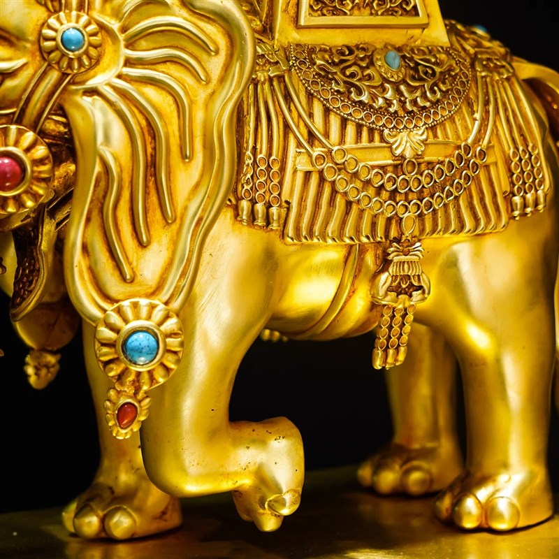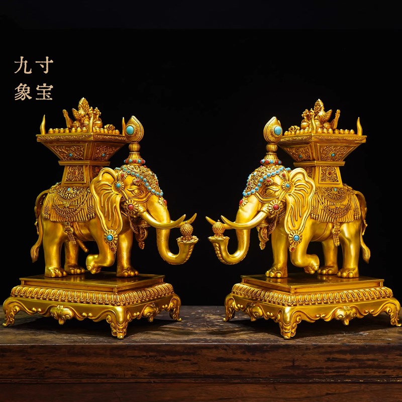 极速藏式a纯铜象宝摆件象宝酥油灯座供灯精品仿古鎏金铜像家用客