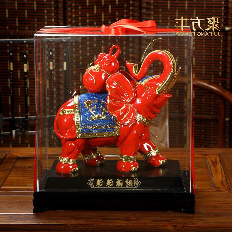 B003中国红漆线雕陶瓷工艺品摆件大象家居客厅桌面装饰品厂家直批