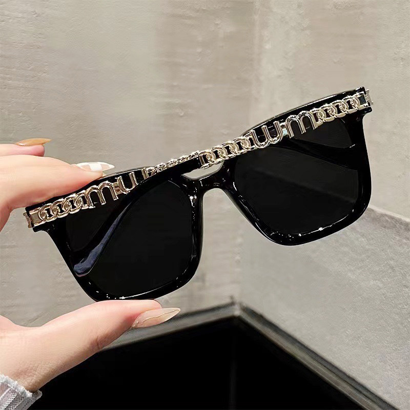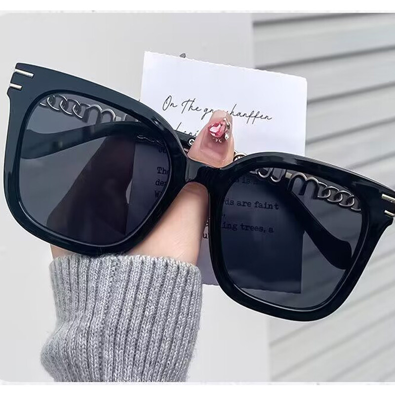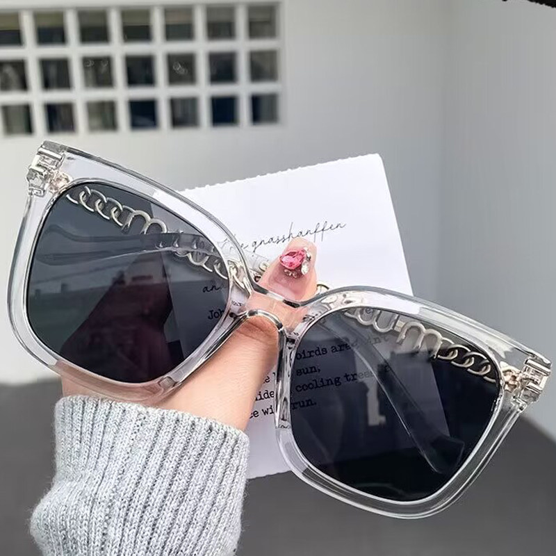 2023年春夏新款透明茶色太阳镜女大脸显脸小黑色时尚链条墨镜男潮