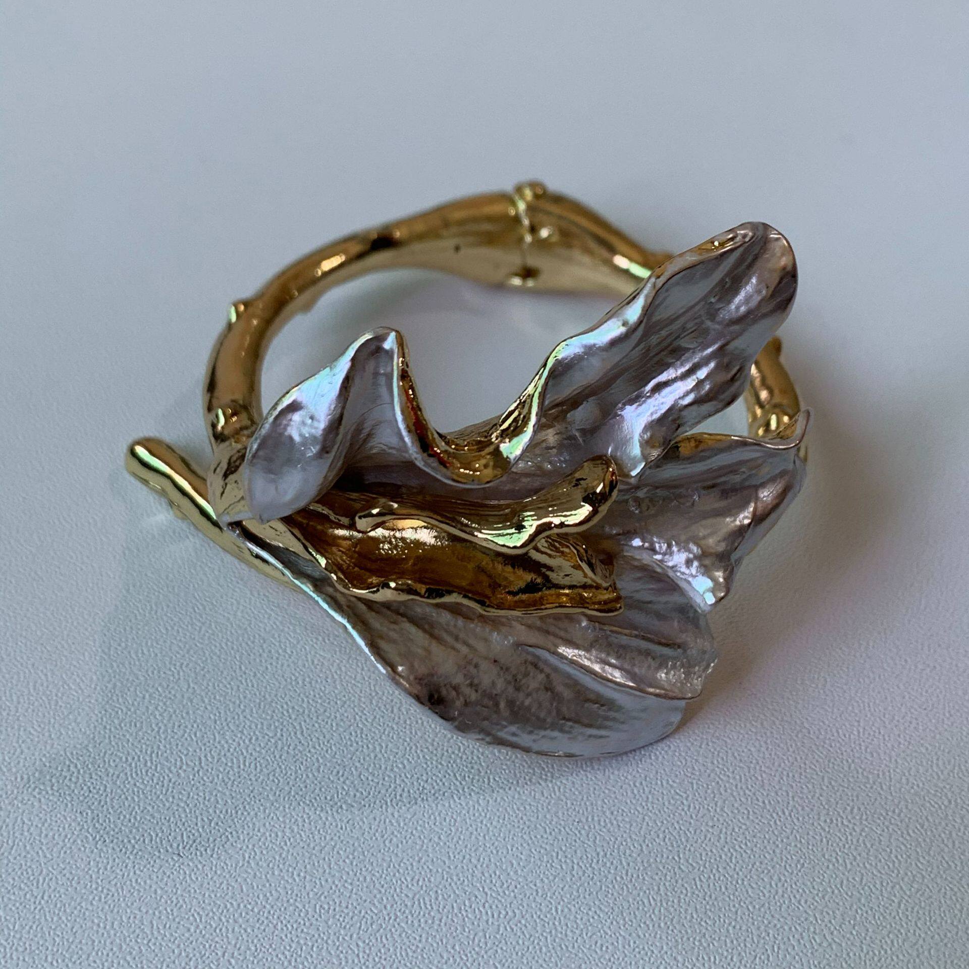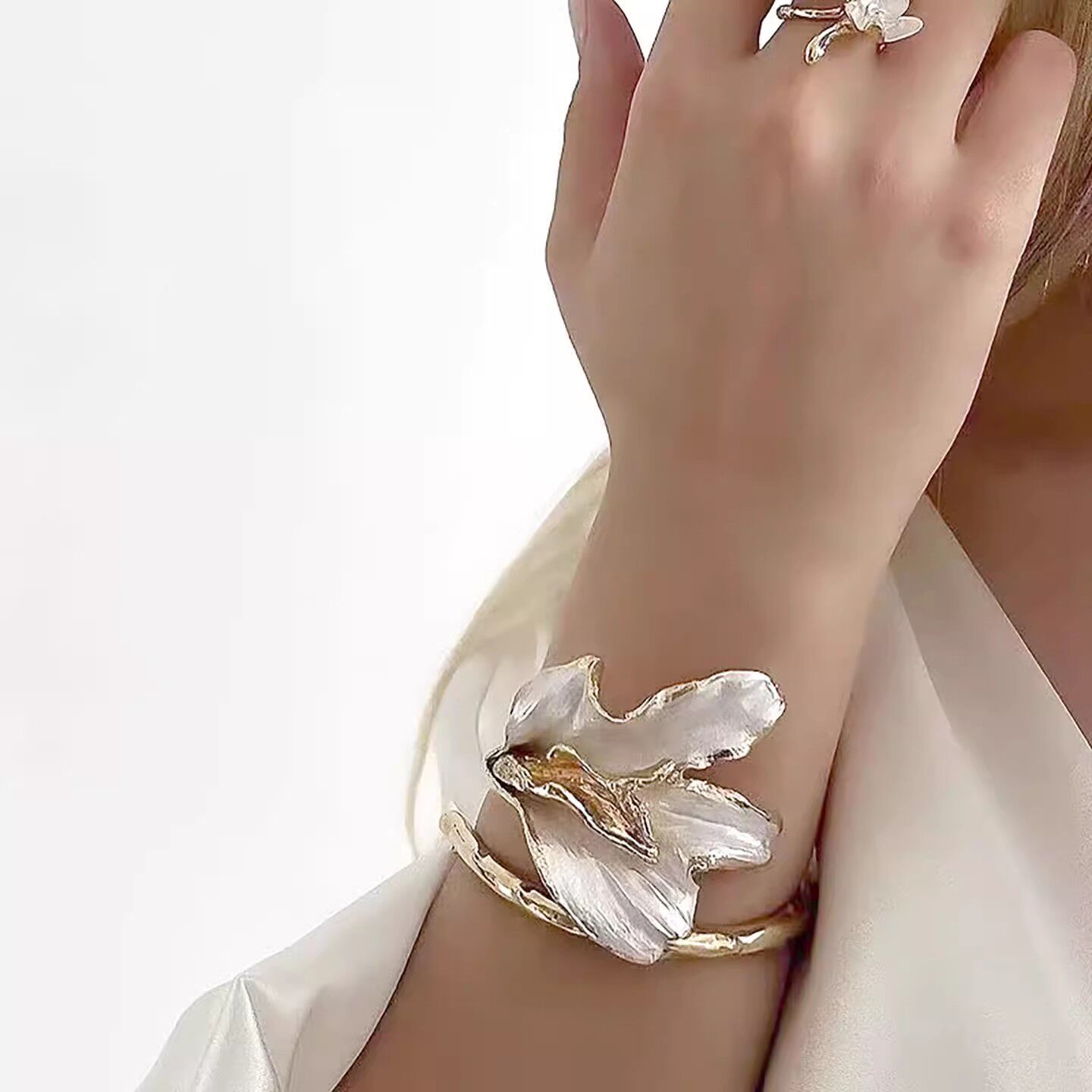 欧美ZR设计感白色珐琅鸢尾花开口手镯女2025新款树叶手环小臂环潮