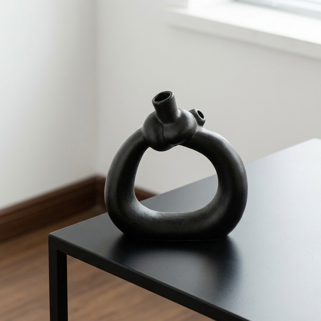 简约风黑色镂空花瓶摆件创意造型装饰品家居工艺品